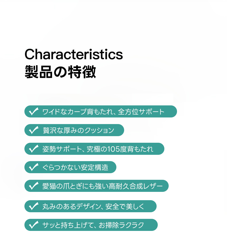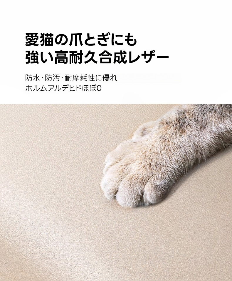 - 【安心の耐久性とお手入れのしやすさ】:合成レザーは防水・防汚・耐摩耗性に優れ、猫の爪とぎにも強いです。持ち上げやすい設計で、日常の手入れも簡単です。