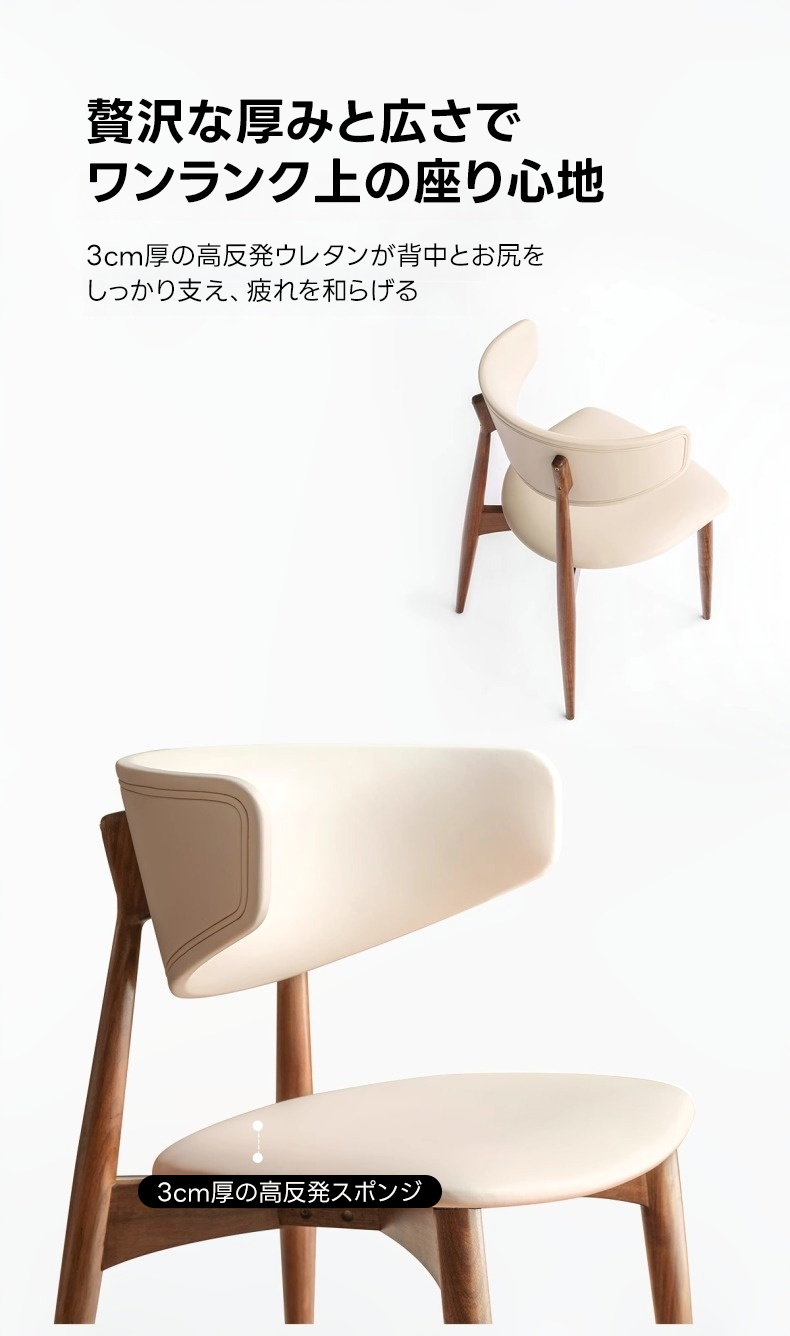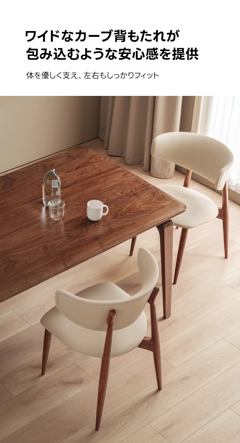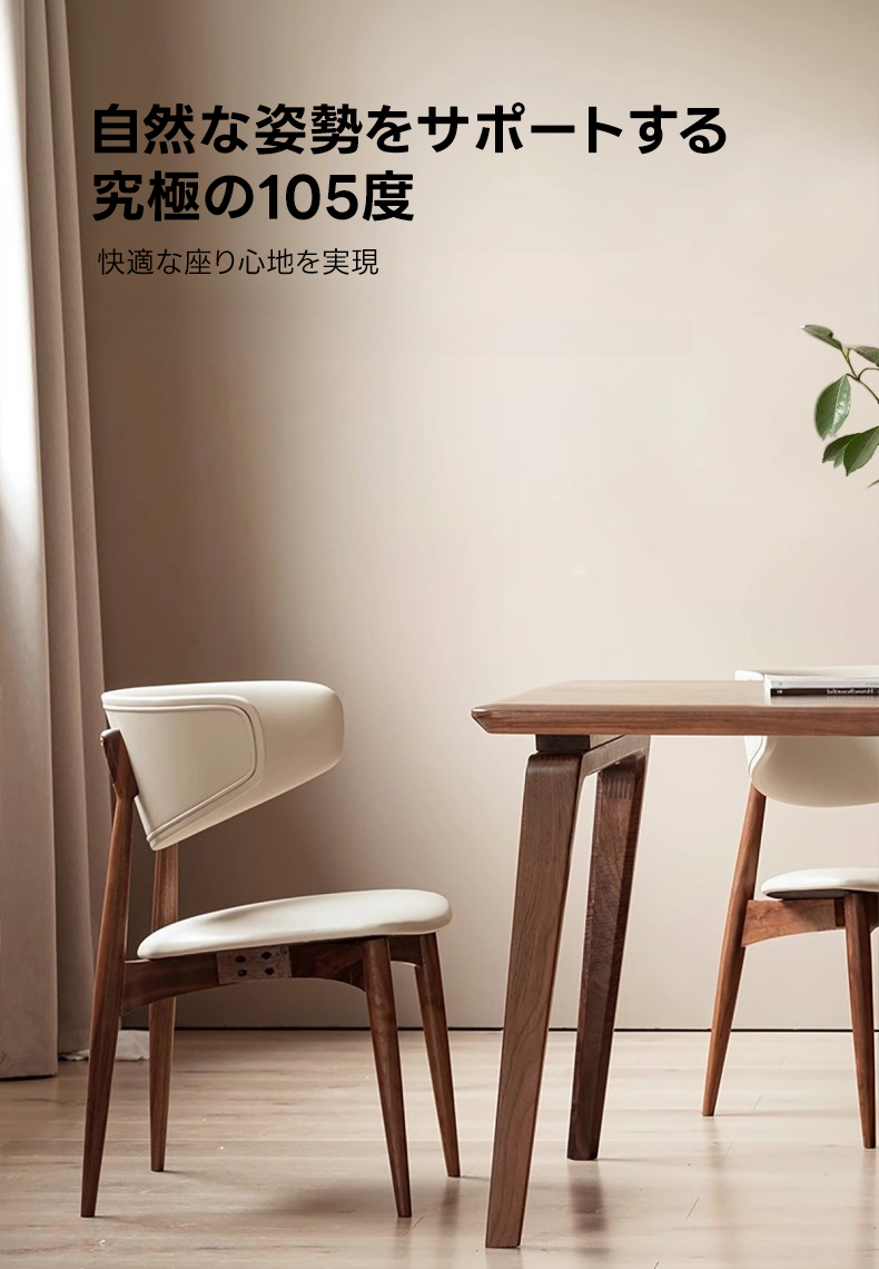 - 【高級素材とデザイン】:北米FAS級のブラックウォールナット材を使用し、ナチュラルで落ち着いたブラウンの色合いが特徴です。高密度ウレタンフォームのクッションが快適な座り心地を実現します。