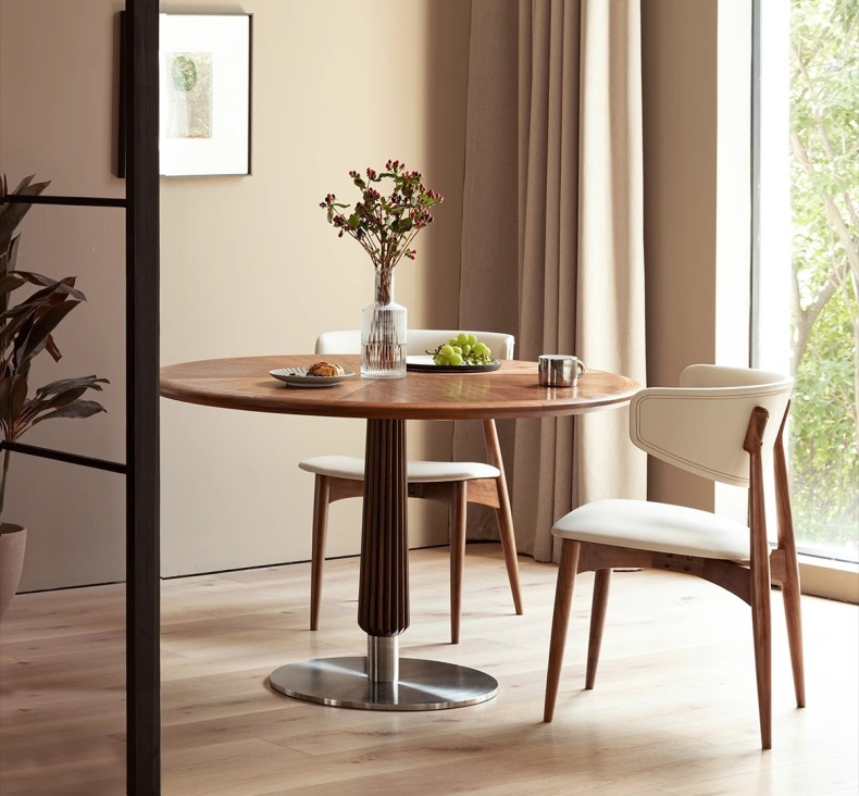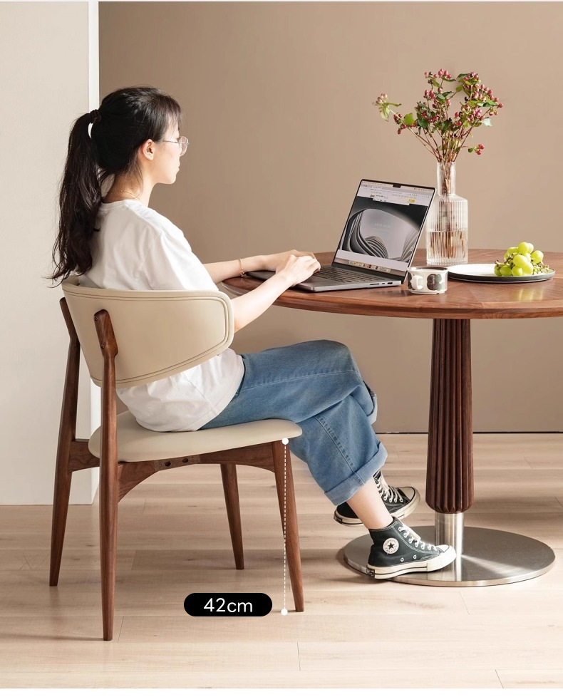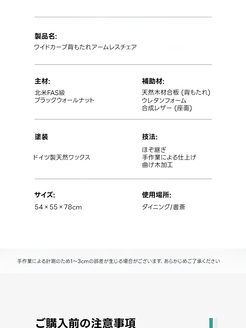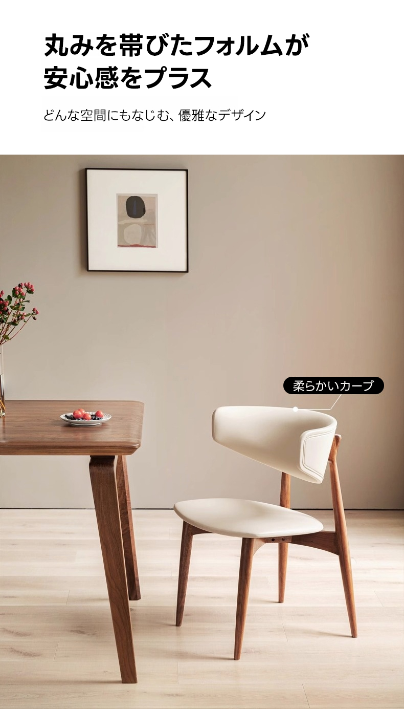 - 【高級素材とデザイン】:北米FAS級のブラックウォールナット材を使用し、ナチュラルで落ち着いたブラウンの色合いが特徴です。高密度ウレタンフォームのクッションが快適な座り心地を実現します。