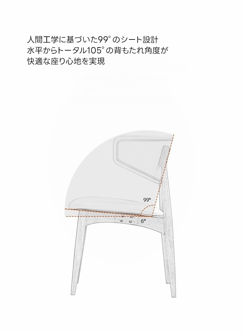 ワイドカーブ背もたれアームレスチェア