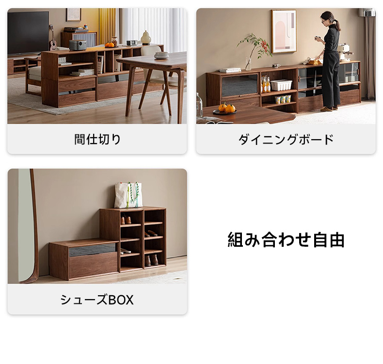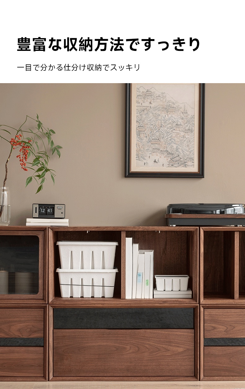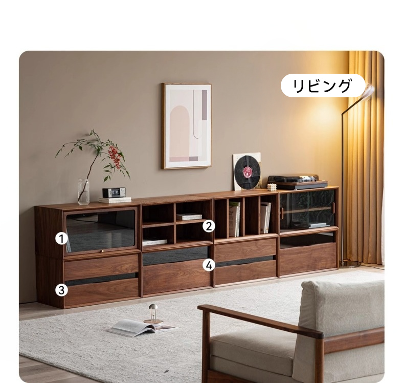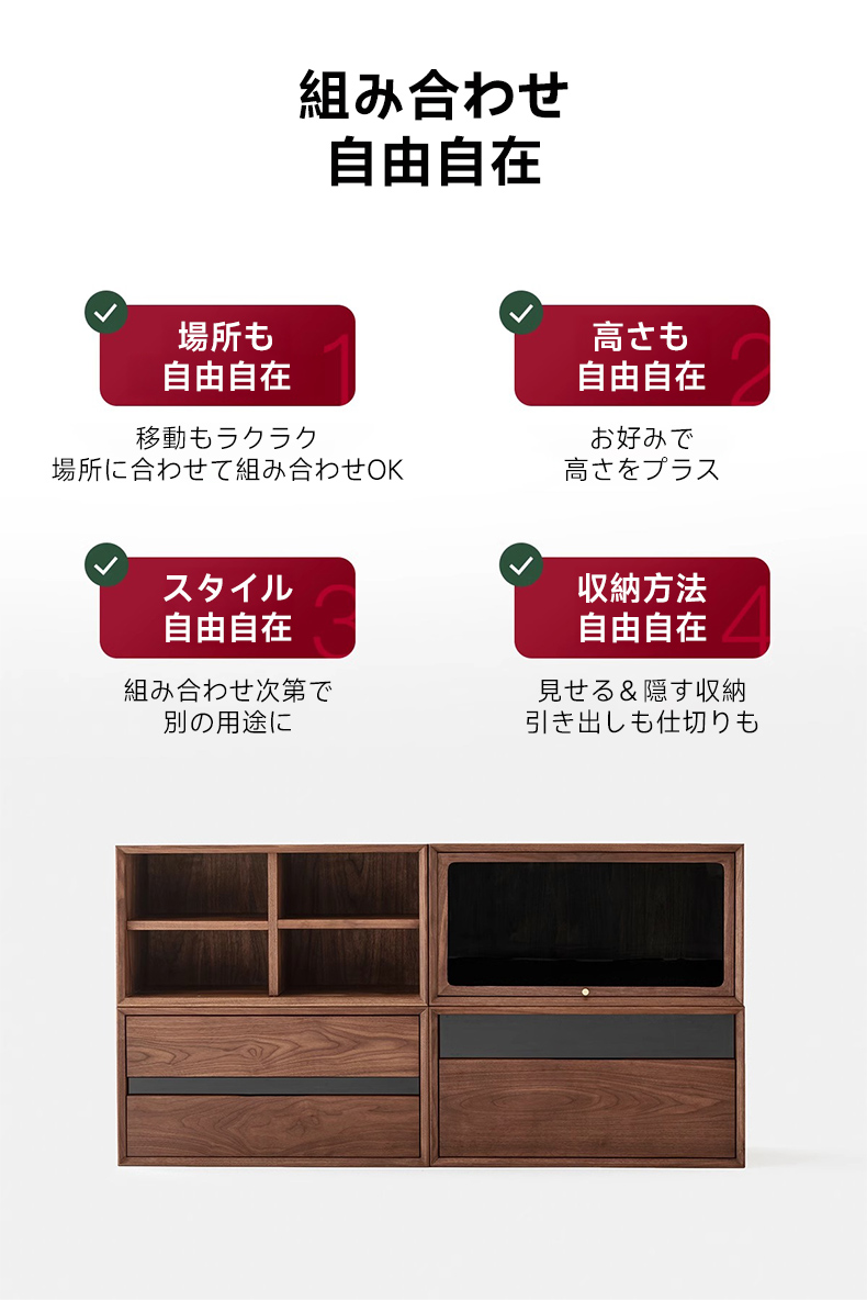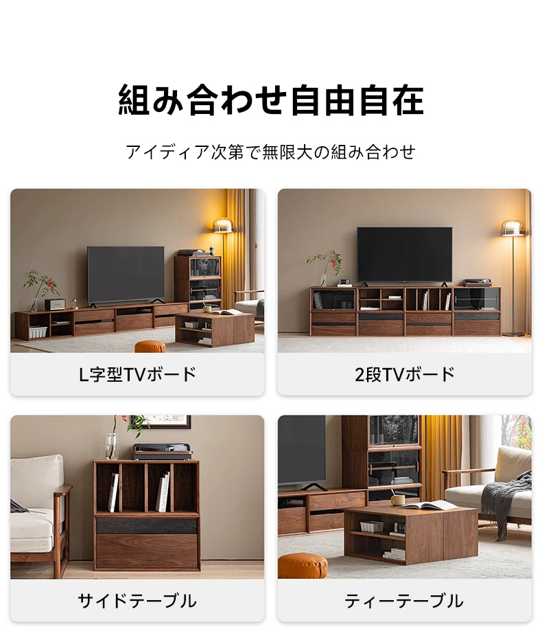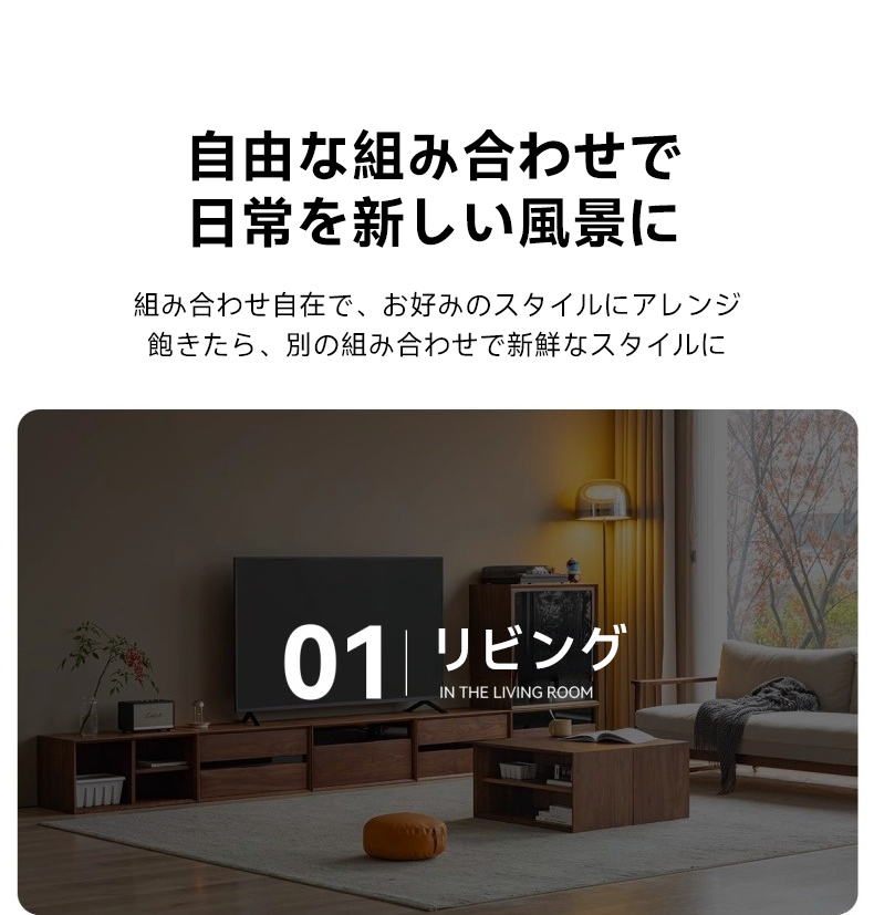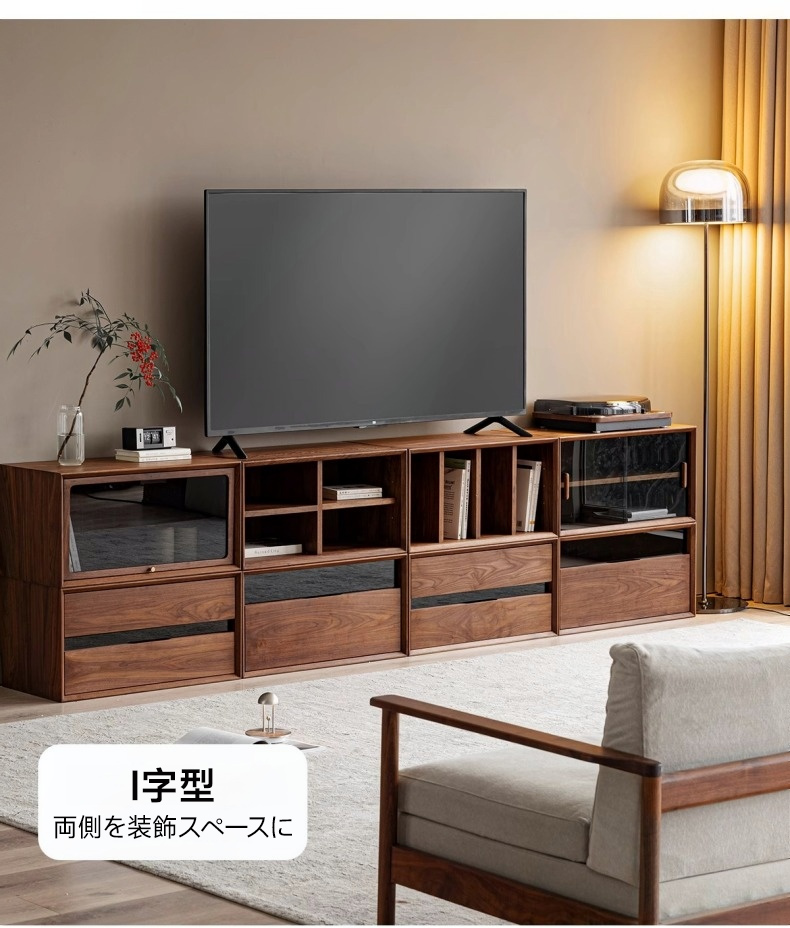 - 【自由な組み合わせが可能】このテレビボードは、オープン式、フラップ式、引き出しタイプ、2段引き出しの4種類のモジュールを自由に組み合わせることができます。リビングや寝室など、さまざまなシーンで使用でき、空間に合わせてカスタマイズ可能です。
