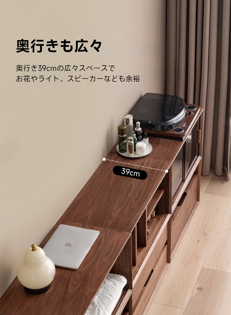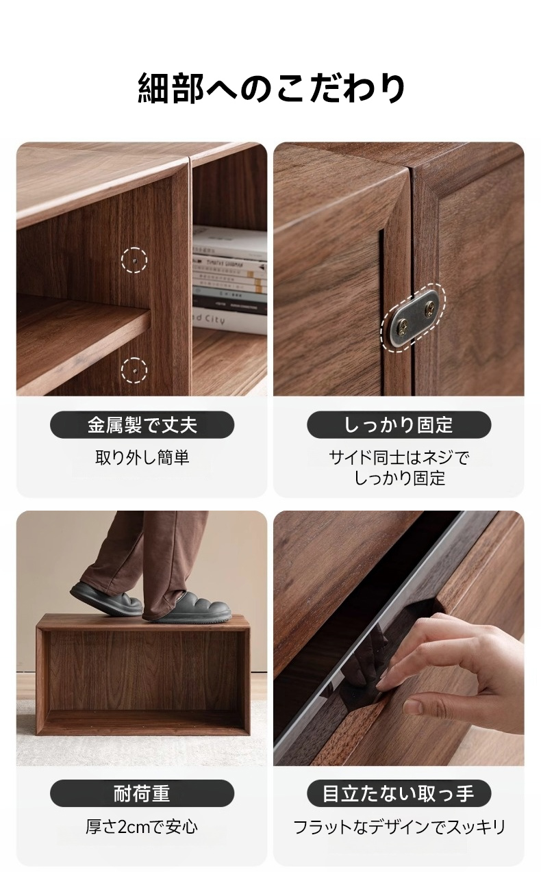 - 【高品質な素材とデザイン】北米産FAS級ウォールナットを使用し、ENFグレードの天然木積層合板を補助材として採用。天然オイルワックス仕上げで木目の美しさを引き立て、ナチュラルなブラウンカラーがどんなインテリアにも馴染みます。