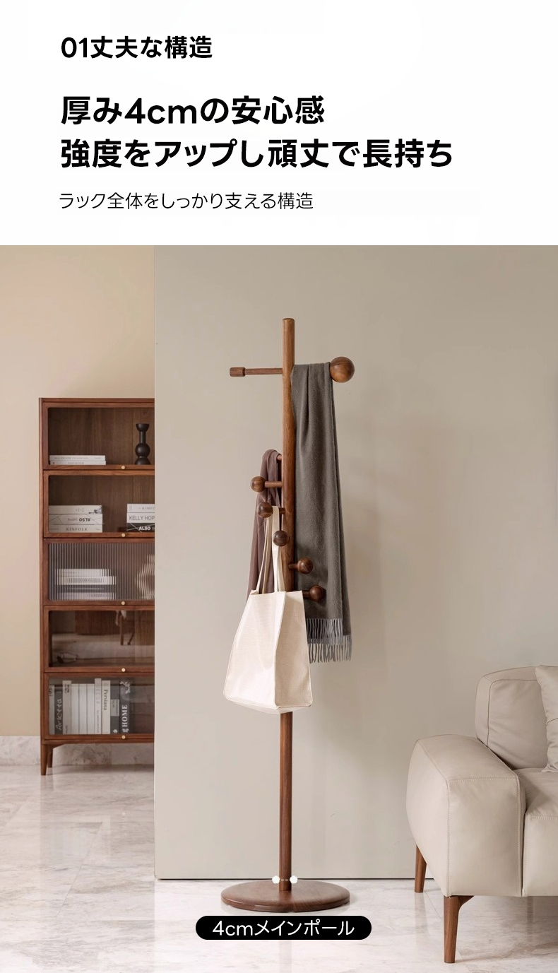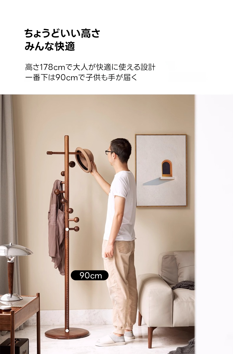 - 【多様なシーンで活躍】リビング、玄関、寝室など様々なシーンで使用可能。高さ178cmで大人が快適に使える設計、最下部のフックは90cmの高さにあり、子供でも手が届きやすい仕様になっています。