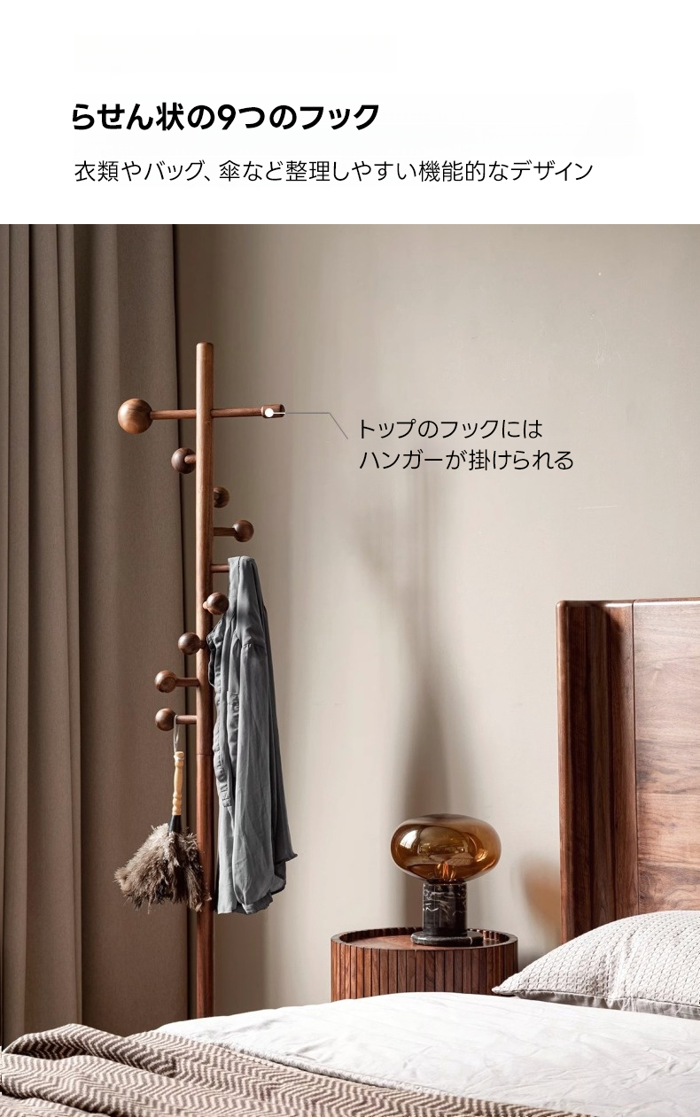 - 【多機能スパイラルフックデザイン】スパイラル状に配置された9つのフックが、衣類やバッグ、傘などを整理しやすく、機能的でありながら美しい収納を実現します。どんな空間にもフィットし、インテリアのアクセントとしても最適です。