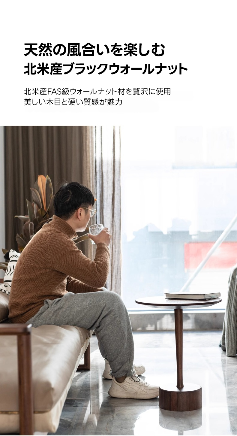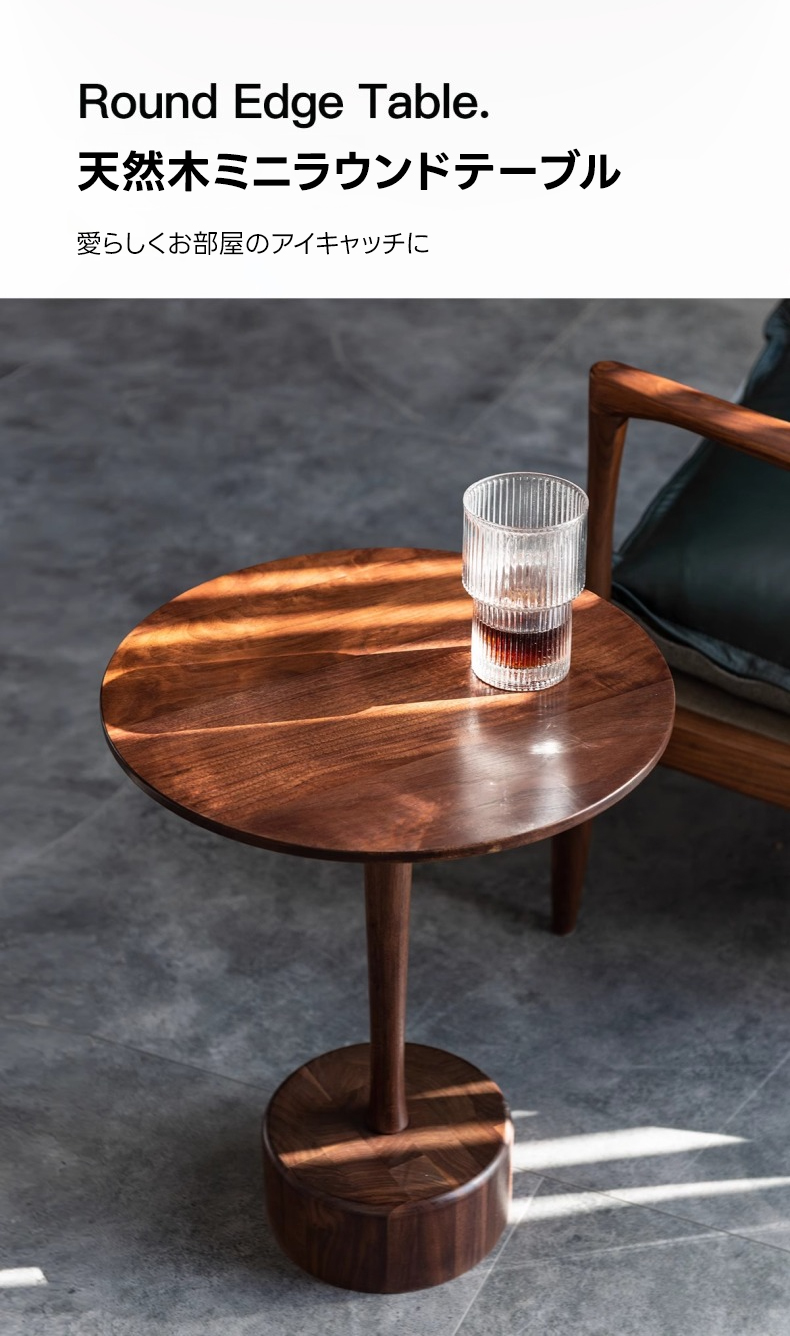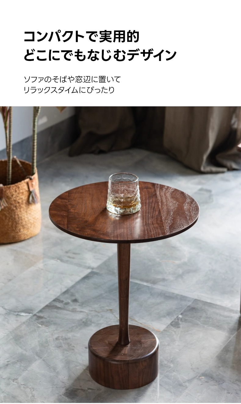 - 【高級感あふれる天然木素材】北米産ブラックウォールナット材を使用したこのミニラウンドテーブルは、美しい木目と耐久性を兼ね備えています。直径40cm、高さ50cmのコンパクトサイズで、リビングやダイニング、寝室など様々な場所にフィットします。