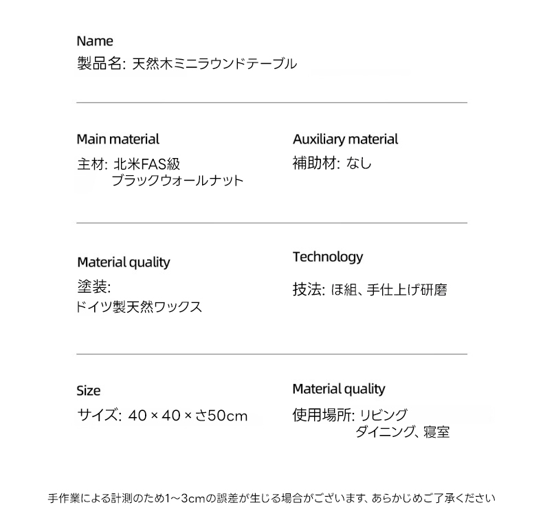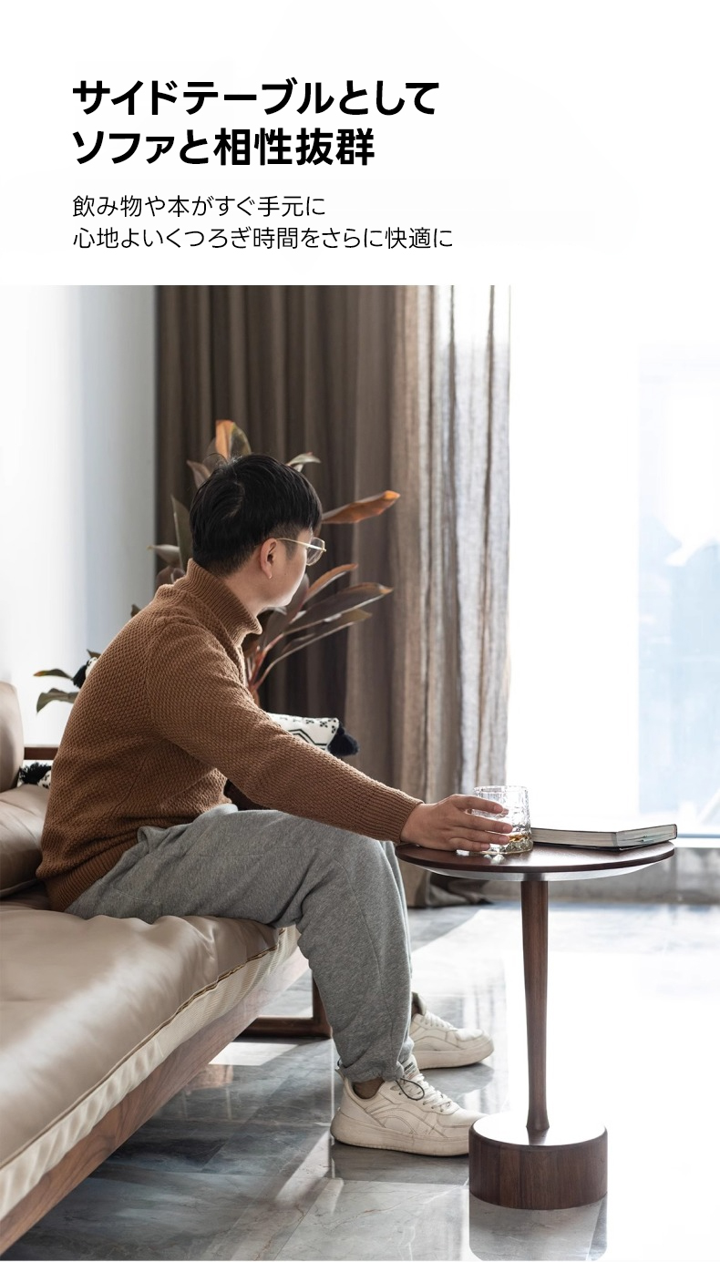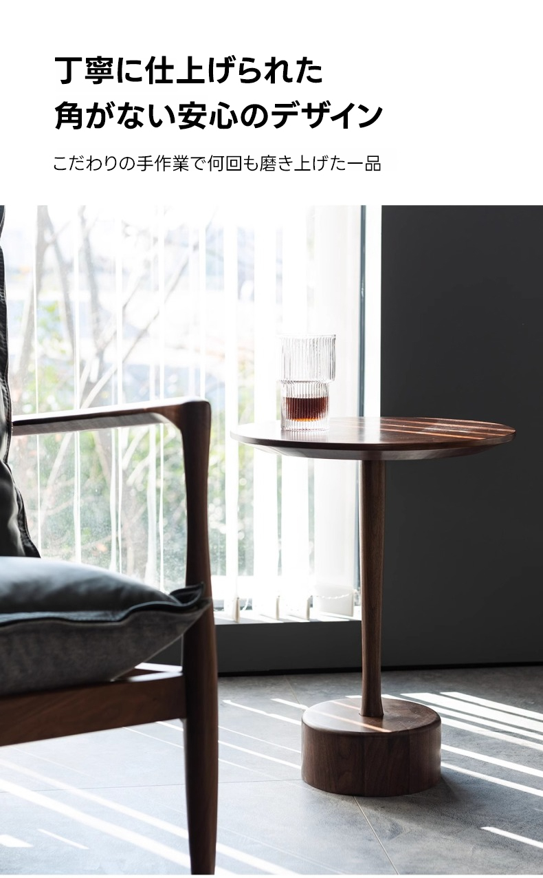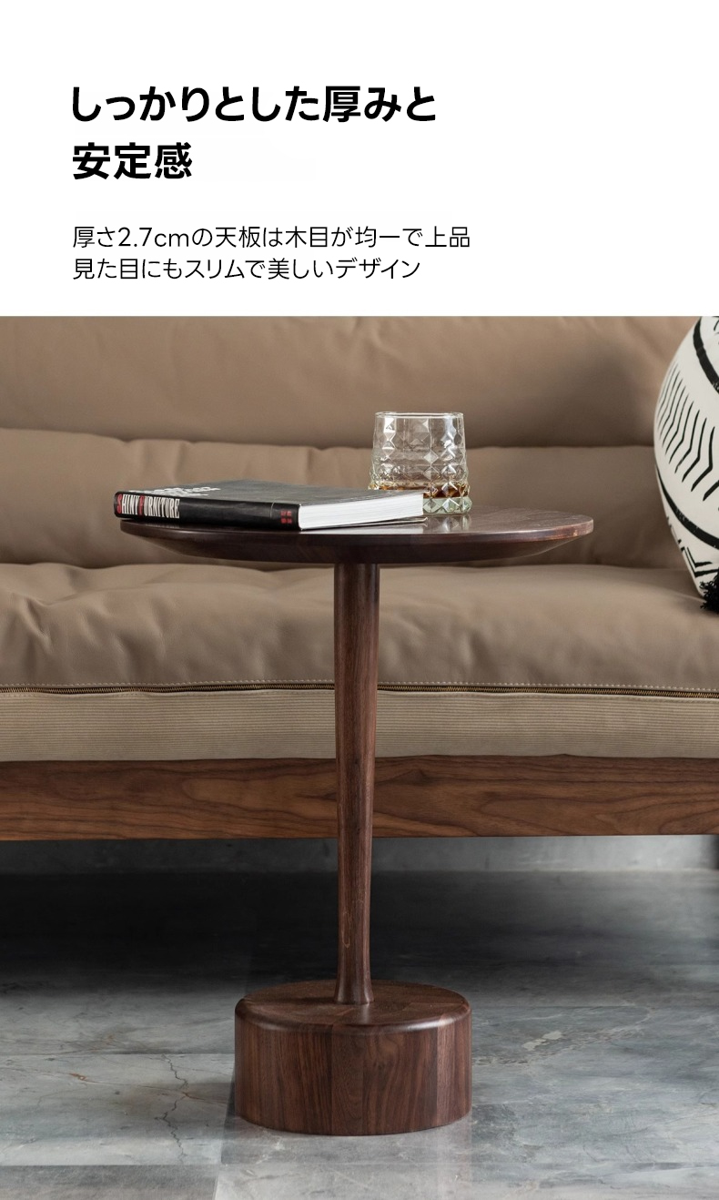 - 【高級感あふれる天然木素材】北米産ブラックウォールナット材を使用したこのミニラウンドテーブルは、美しい木目と耐久性を兼ね備えています。直径40cm、高さ50cmのコンパクトサイズで、リビングやダイニング、寝室など様々な場所にフィットします。