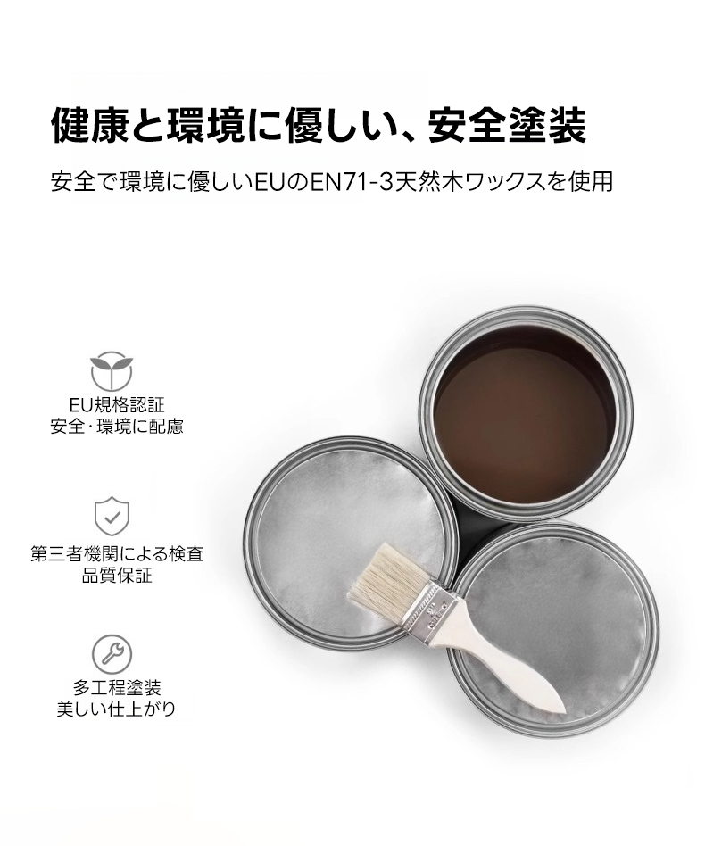 - 【環境に優しい仕上げ】ドイツ製の天然ワックスで仕上げられており、EUのEN71-3基準をクリアした安全な塗装が施されています。環境にも優しく、安心してお使いいただけます。