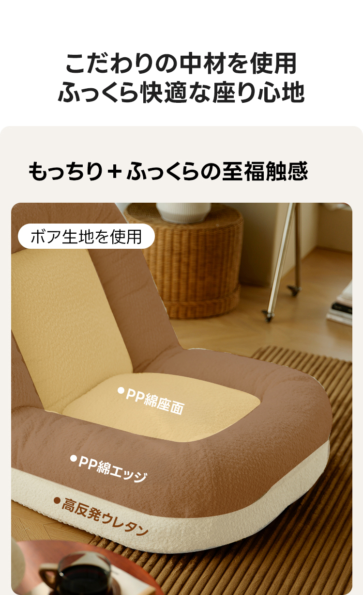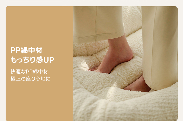 - 【高品質な素材とデザイン】フランネル生地を使用し、柔らかく快適な座り心地を提供します。ボア生地と高反発ウレタンが耐久性と快適性を兼ね備え、PP綿の中材がもちもちとした座り心地を実現します。