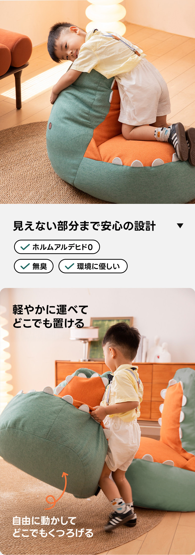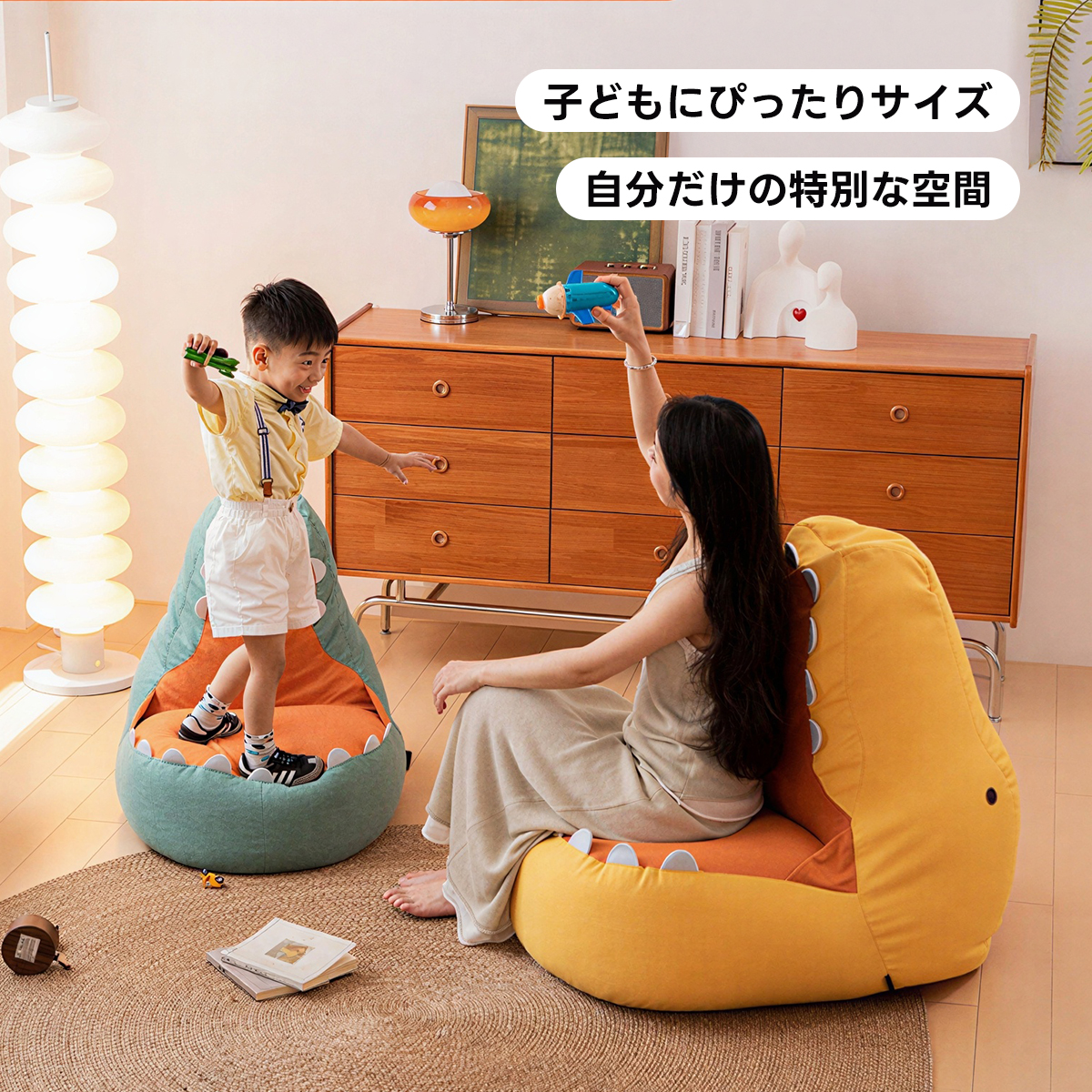 - 【ユニークなデザインと多様なシーンでの活躍】:恐竜をモチーフにしたデザインは、子供たちの遊び心を刺激し、子供部屋やリビングルームにぴったりです。遊びや読書の時間を特別なものにします。
