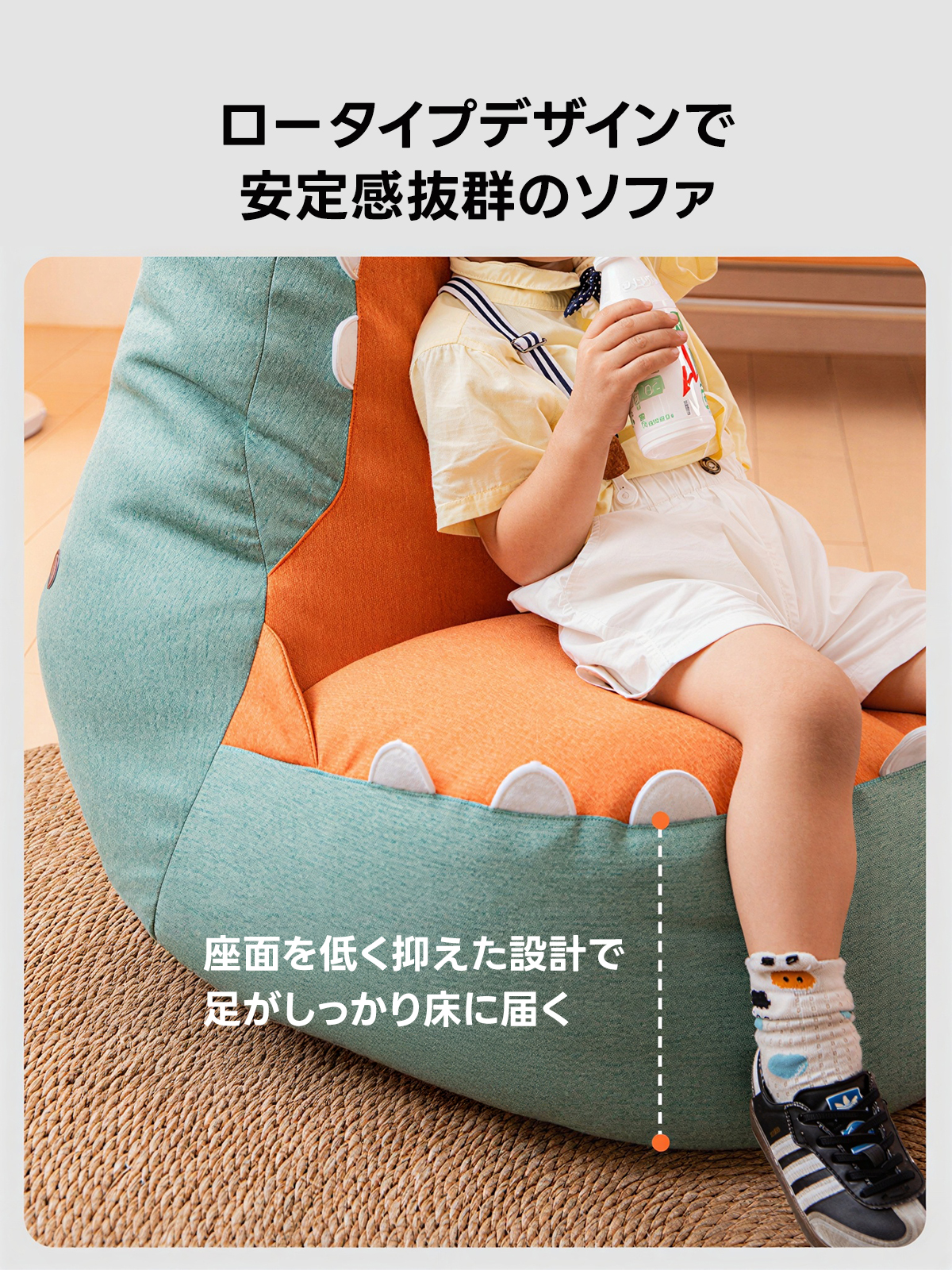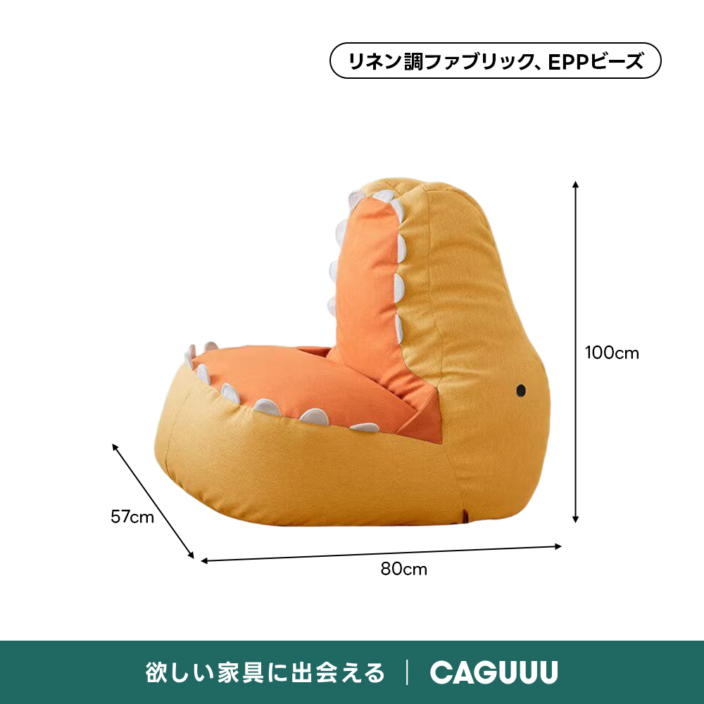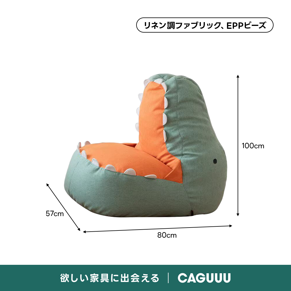 ダイナソーデザインローソファ|体に沿うビーズ構造×リネン調ファブリック【洗えるカバー】