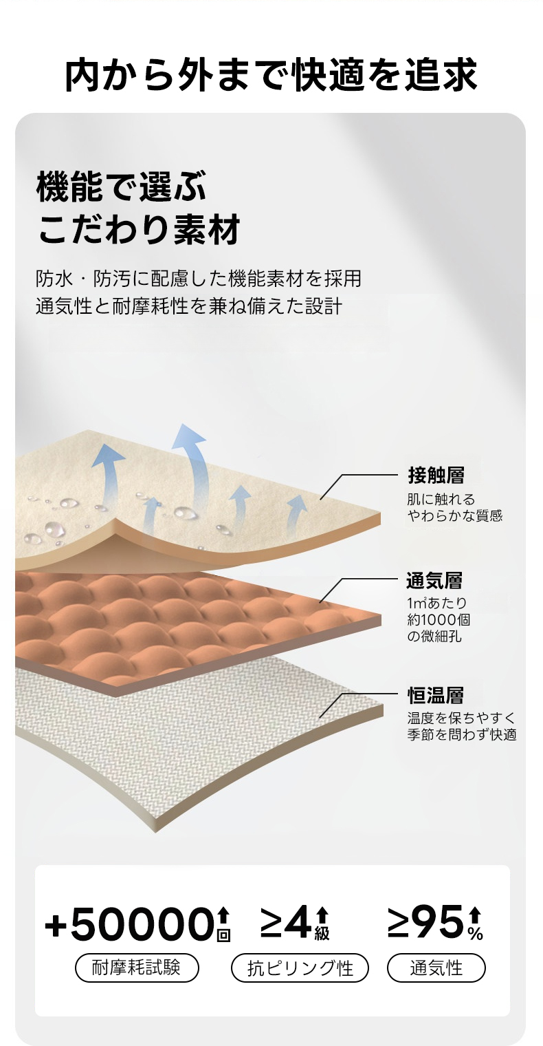 - 【お手入れ簡単で清潔】取り外し可能なカバーが付いており、洗濯が可能なので、いつでも清潔に保てます。防水・防汚機能を備えた素材を使用し、通気性と耐摩耗性も兼ね備えています。
