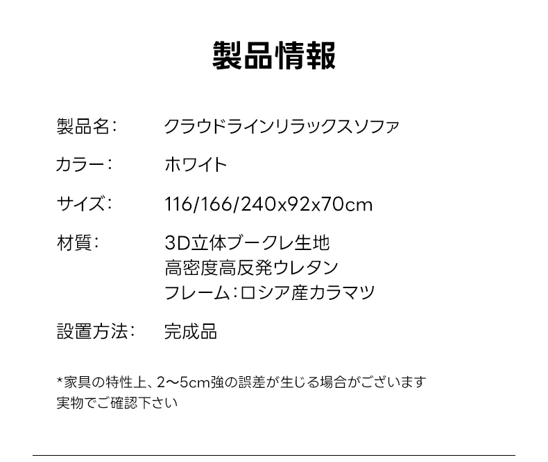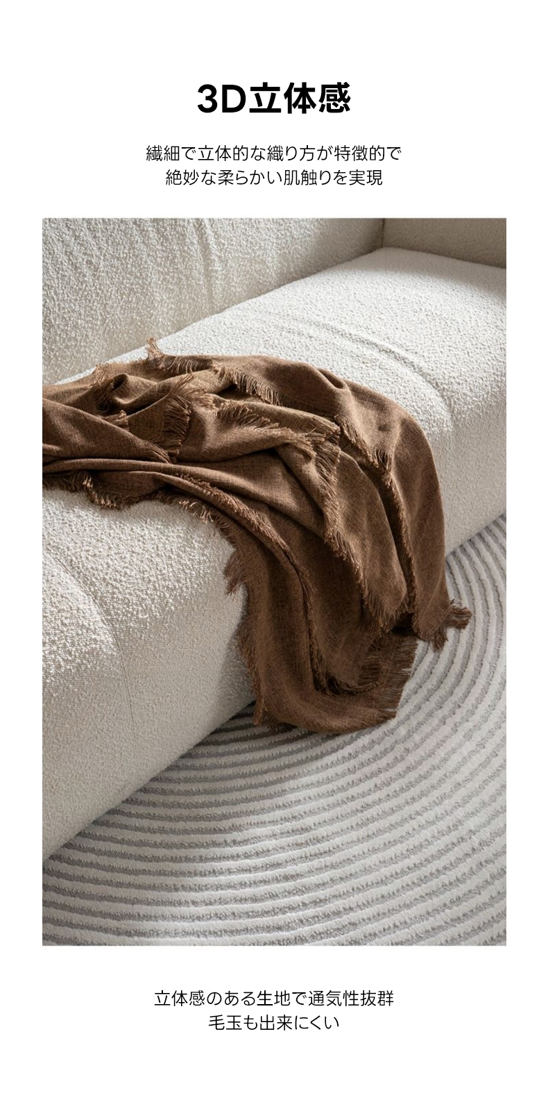 - 【高品質な素材と耐久性】3D立体ブークレ生地を使用し、柔らかい肌触りと優れた通気性を実現。高密度高反発ウレタンが使用されており、長時間座っても疲れにくいです。フレームにはロシア産カラマツを使用し、頑丈で長く使える耐久性があります。