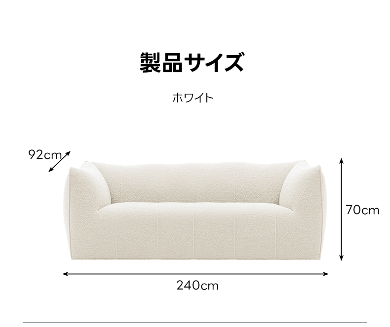 - 【多様なサイズで幅広い対応】一人掛け(116cm)、二人掛け(166cm)、三人掛け(240cm)と、用途に合わせて選べるサイズ展開が魅力です。一人暮らしの方からファミリーまで、様々なライフスタイルに対応可能で、リビングの中心に置くことで空間全体を引き立てます。