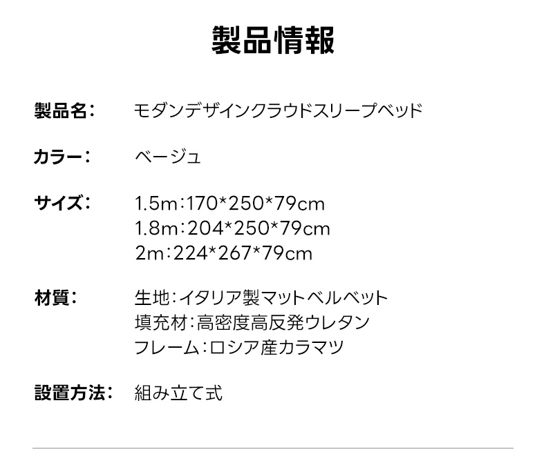 - 【スタイリッシュなデザインと快適性】モダンデザインクラウドスリープベッドは、イタリアンスタイルの洗練されたデザインが特徴です。柔らかなラインとふんわりとしたクッションが、体を優しく包み込み、最高の癒しの時間を提供します。