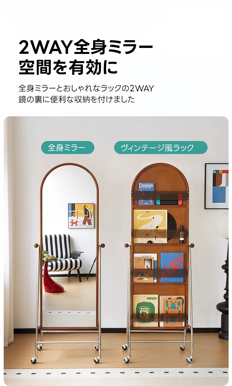 - 【多機能な2WAYデザイン】このミラーラックは、ミラーとしてもラックとしても使用できる2WAYデザインを採用しています。必要に応じて使い分けが可能で、スペースを有効に活用することができます。特に一人暮らしや限られたスペースでの使用に最適です。