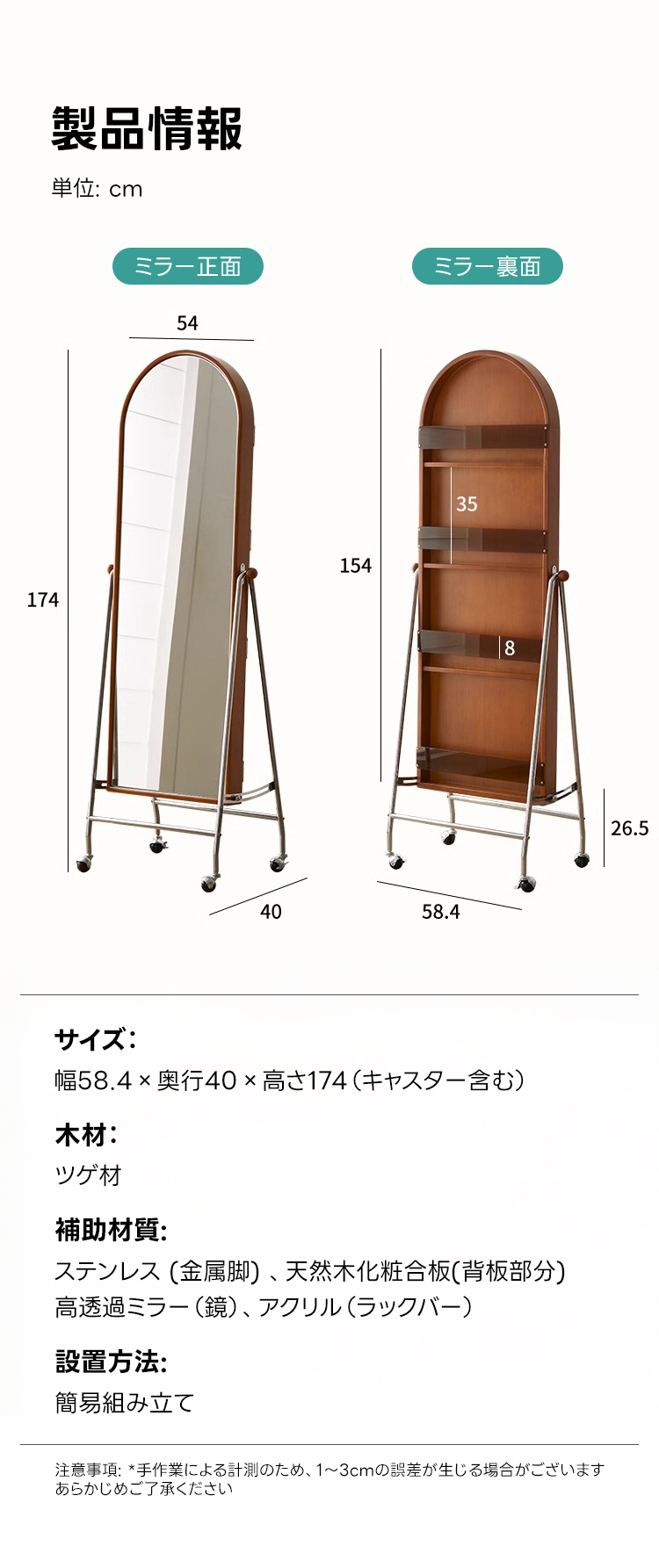 - 【幅広い適用性】ヴィンテージ風のデザインが特徴のこのミラーラックは、寝室やベッドルームにぴったりです。カップルやファミリー向けに設計されており、どんなインテリアにも自然に溶け込みます。組立も簡単で、すぐに使用を開始できます。