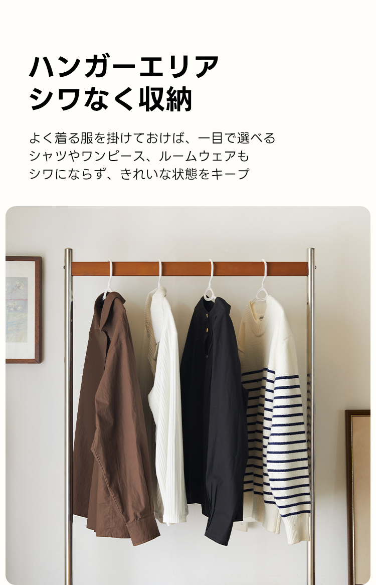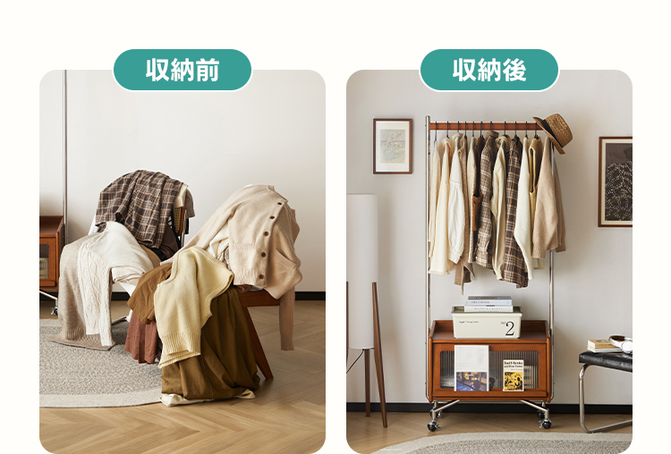 - 【多機能デザインで整理整頓が簡単】:このハンガーラックは、ハンガーエリア、乾掛けエリア、中段ディスプレイ、収納キャビネットを備え、衣類や小物を効率的に整理整頓できます。さまざまな収納ニーズに応える設計で、部屋をすっきりと保てます。