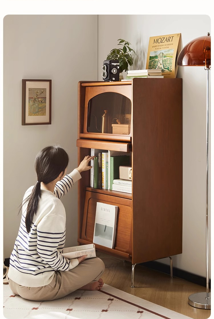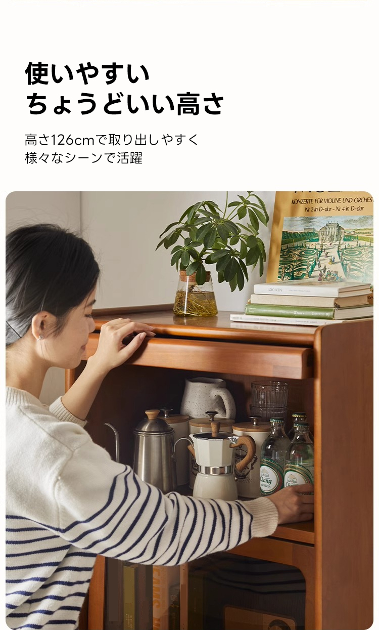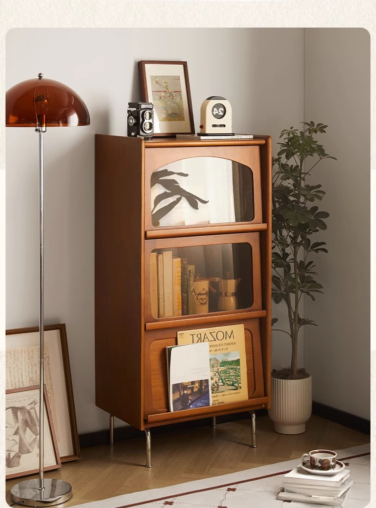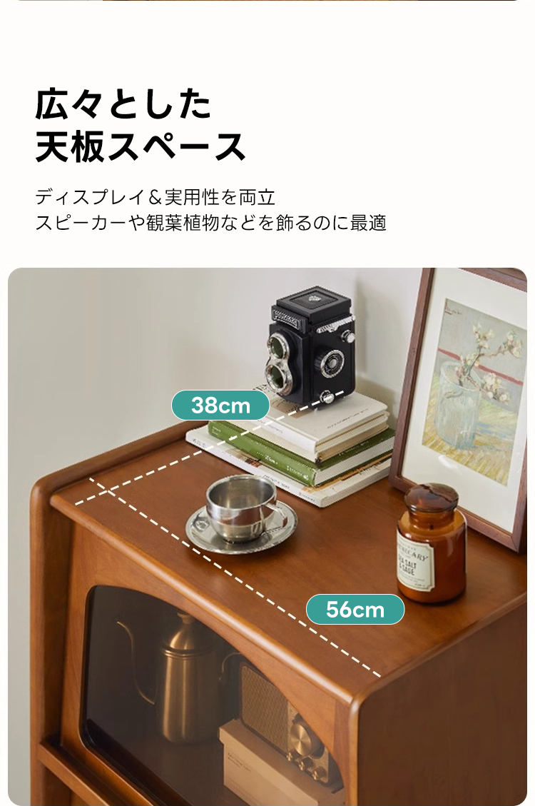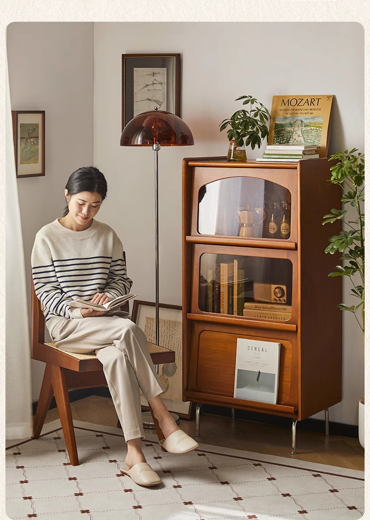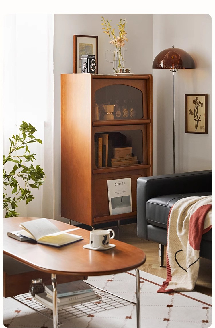- 【高級感と機能性の両立】:ツゲ材を使用した3段キャビネットは、ヴィンテージな雰囲気と高級感を兼ね備えています。ブラウンの色合いと美しい木目がリビングルームを落ち着いた空間に変えます。茶色のガラス扉は中の収納物を優雅に見せ、インテリアとしても魅力的です。