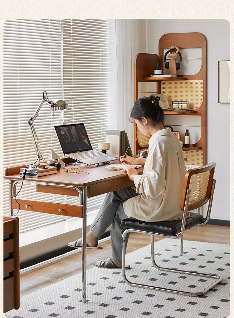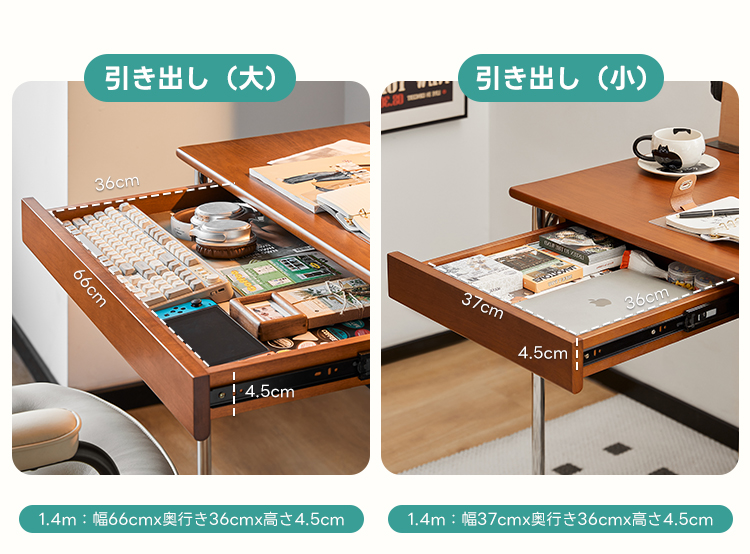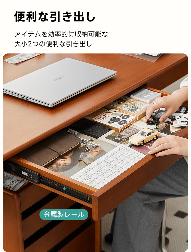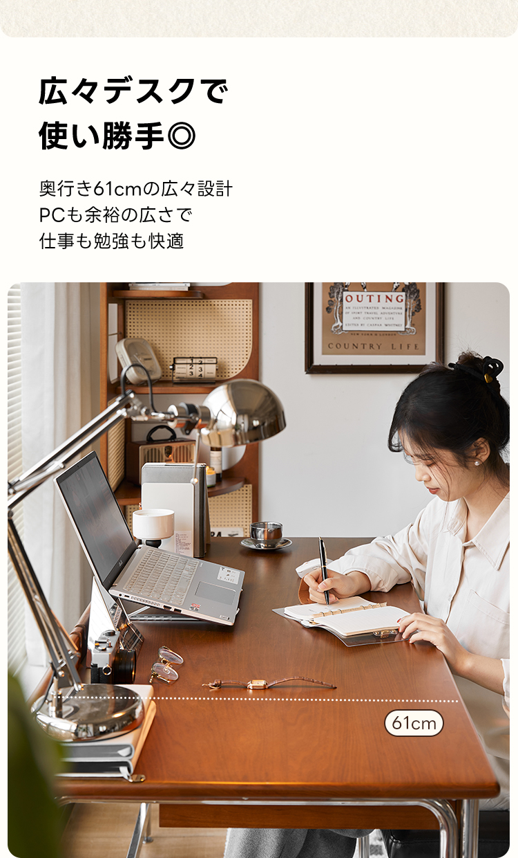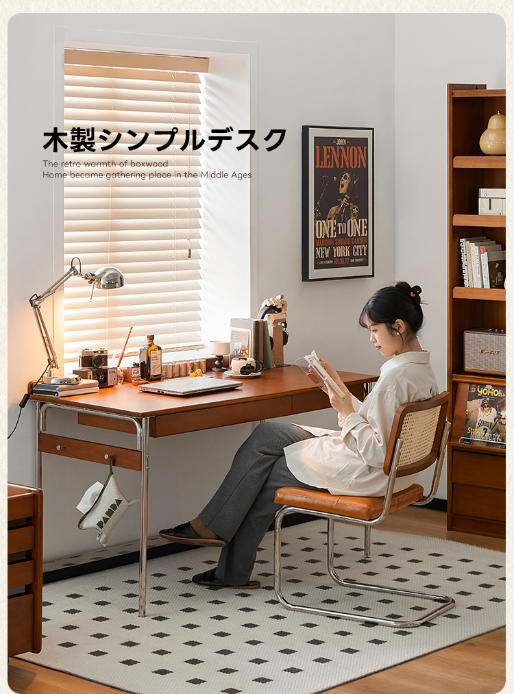 - 【多様な使用シーンに最適】広々とした作業スペースを持ち、一人暮らしやカップル、ファミリー向けの書斎やホームオフィスに最適です。ナチュラルなブラウンの色合いがどんなインテリアにもマッチします。