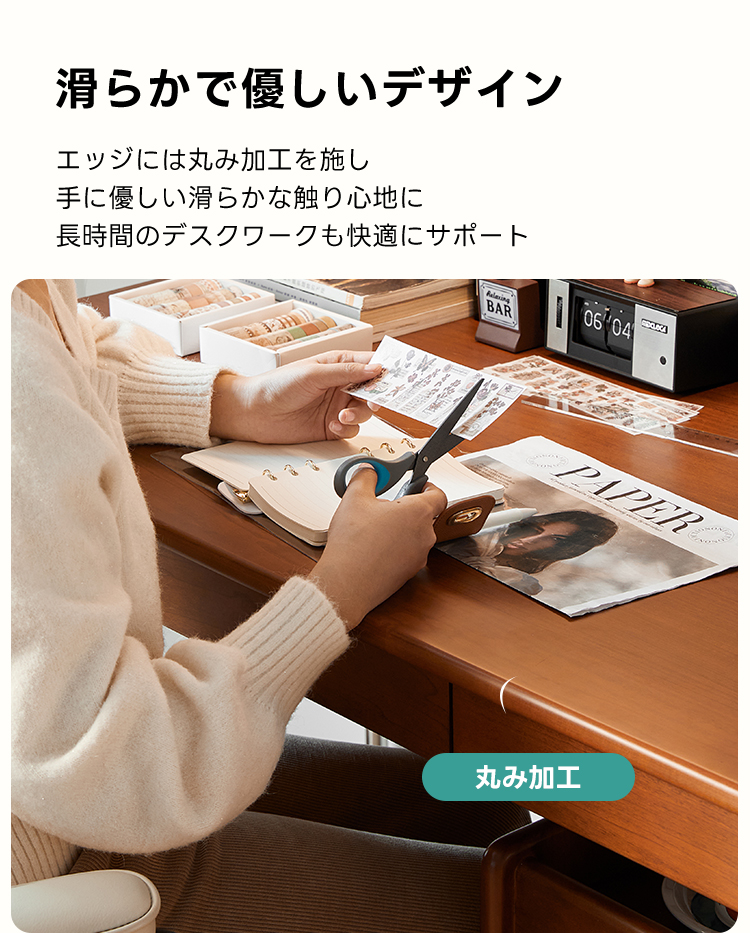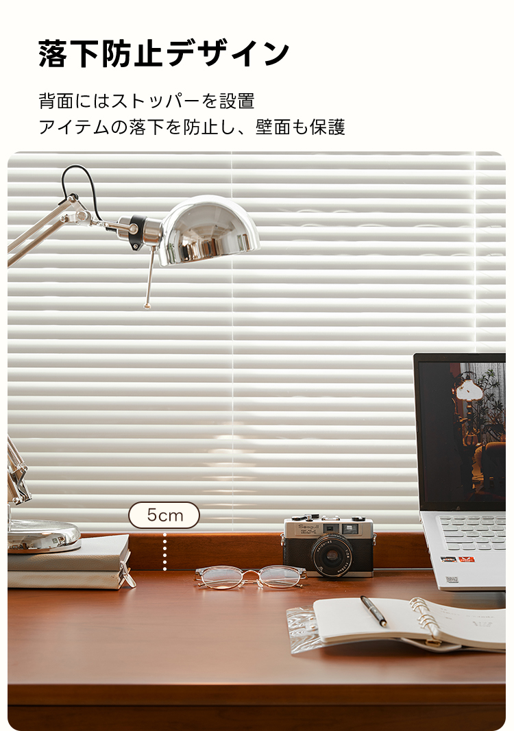 - 【快適な使用体験】丸み加工が施されたエッジが手に優しく、長時間のデスクワークも快適。落下防止のストッパー付きで、アイテムの落下を防ぎます。