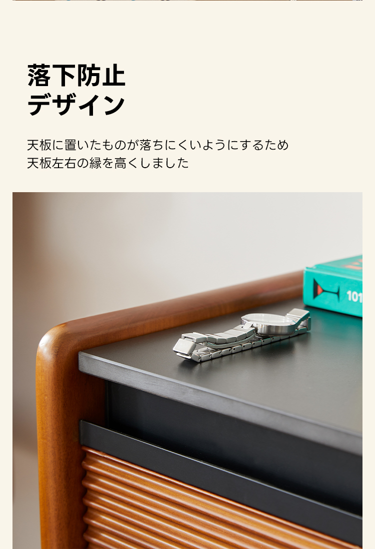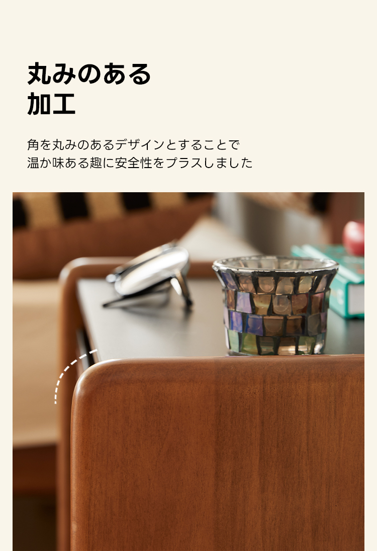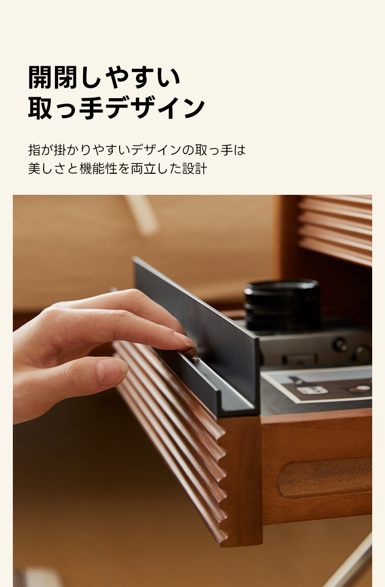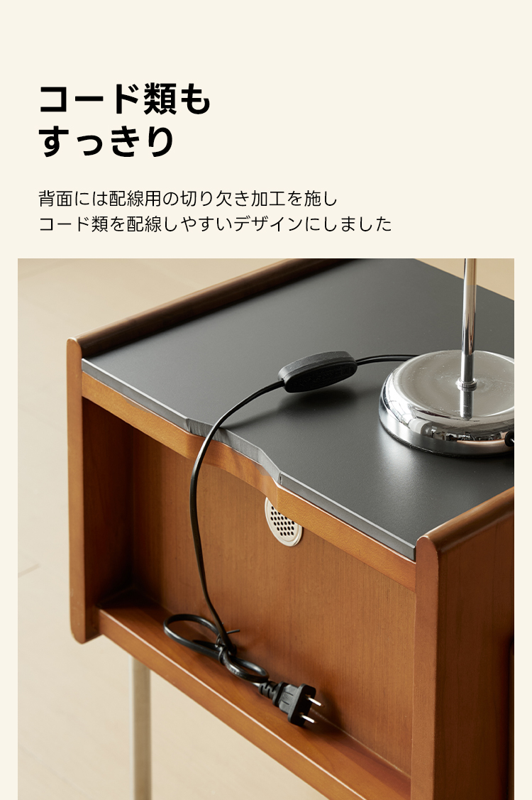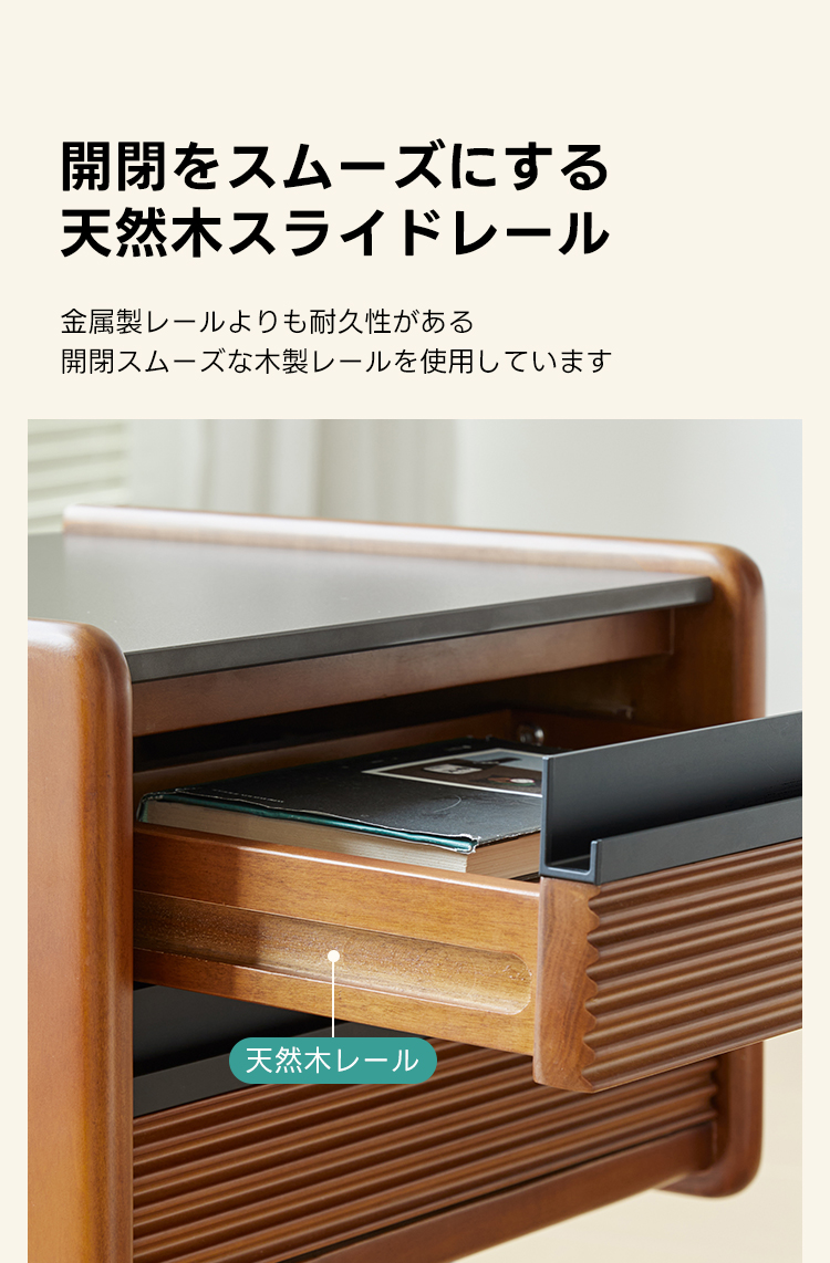 - 【高品質な材料とデザイン】高級感のあるツゲ材を使用し、ナチュラルなブラウンとブラックの配色が落ち着いた雰囲気を演出します。天然木のスライドレールを使用しているため、開閉がスムーズです。さらに、背面には配線用の切り欠き加工が施されており、コード類もすっきりと整理できます。