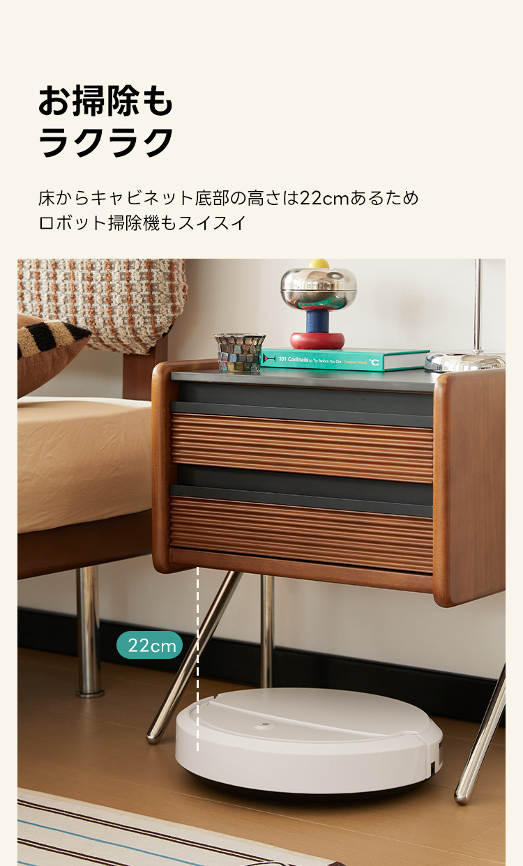 - 【快適な使用体験】天板の両端が高く設計されているため、物が落ちにくく安心です。さらに、丸みを帯びた角のデザインは安全性を高め、優しい印象を与えます。床からキャビネット底部までの高さが22cmあるため、ロボット掃除機もスムーズに通過でき、掃除が簡単です。