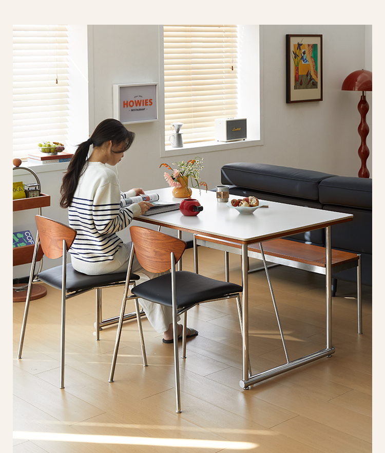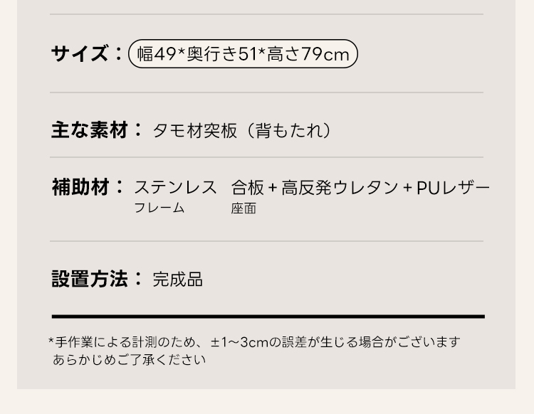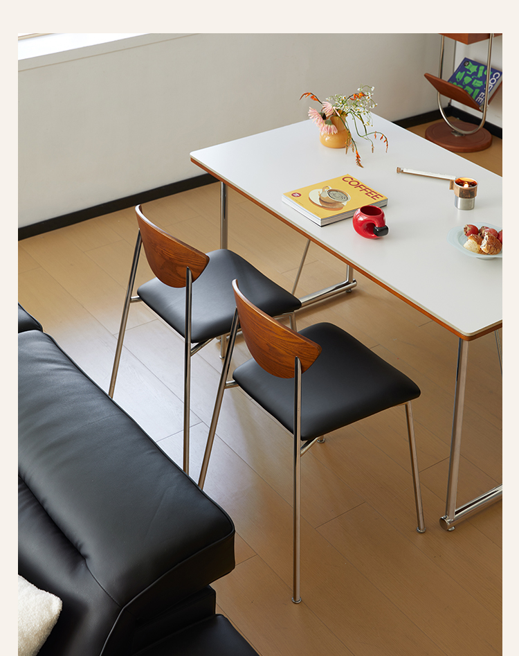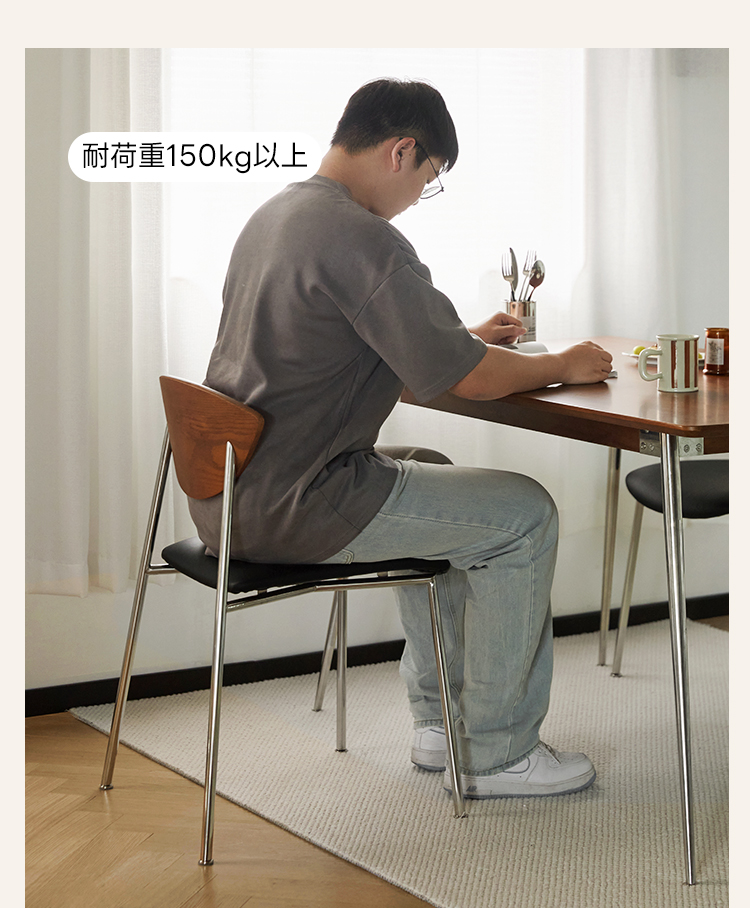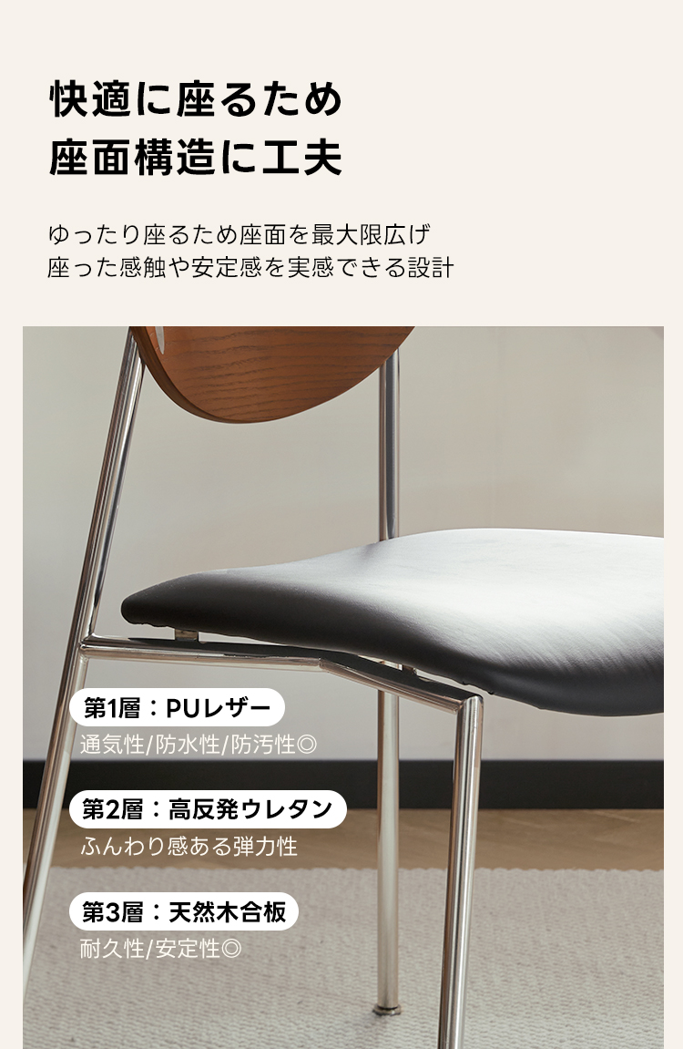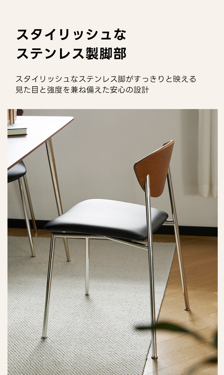 - 【高品質な素材とデザイン】:ナチュラルな木目が美しいタモ材を使用し、座面は通気性、防水性、防汚性に優れたPUレザーで覆われています。ステンレス製のフレームは耐久性が高く、150kg以上の耐荷重を誇ります。