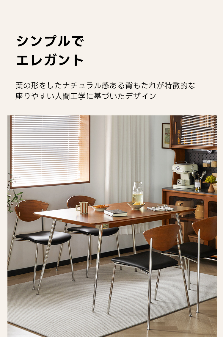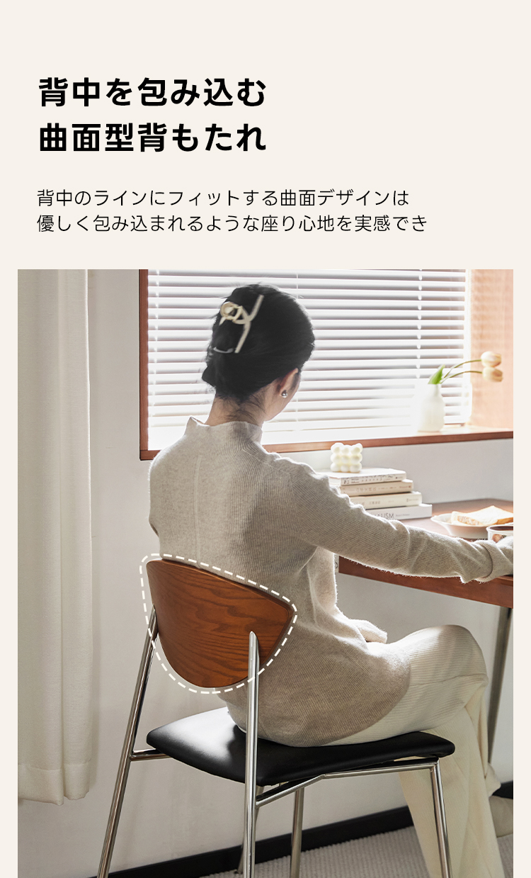 - 【快適な座り心地】:モダンデザインチェアは、葉の形を模した背もたれと高反発ウレタンの座面により、長時間座っても快適な座り心地を提供します。背中を優しく包み込む曲面型デザインで、疲れを感じさせません。