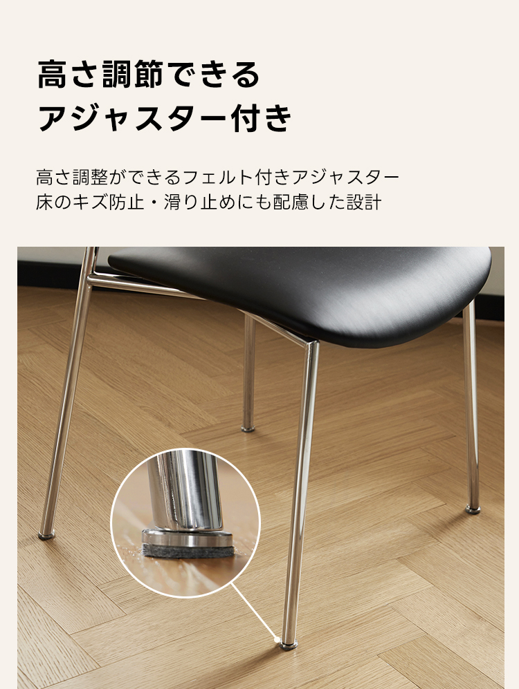 - 【ユーザーに優しい設計】:座面の高さは46cmで、自然な姿勢を保ちやすく、脚部には高さ調節可能なアジャスターが付いているため、床の傷防止や滑り止めにも配慮されています。組み立て不要で、届いたその日からすぐにお使いいただけます。