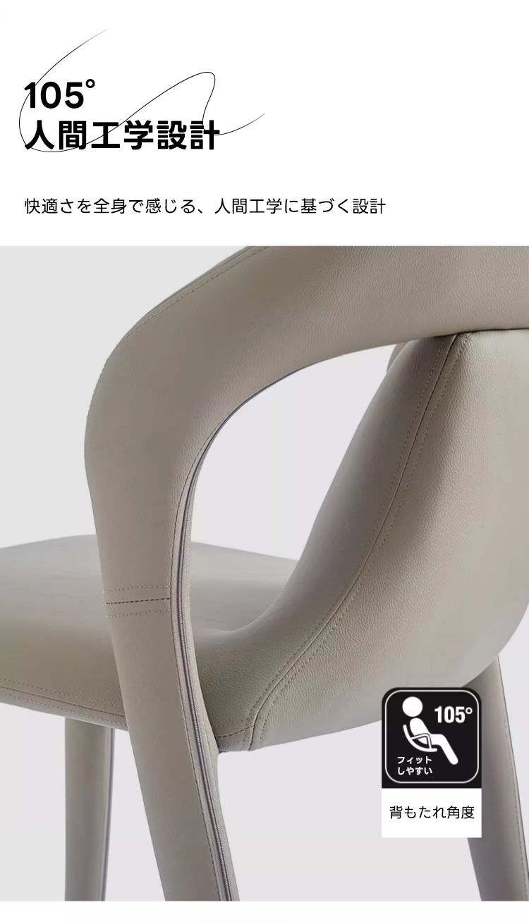 - 【快適な座り心地を実現する人間工学デザイン】:このダイニングチェアは、背もたれの角度を105°に設定し、長時間座っても疲れにくい快適な座り心地を提供します。人間工学に基づいた設計により、体にフィットし、自然な姿勢をサポートします。