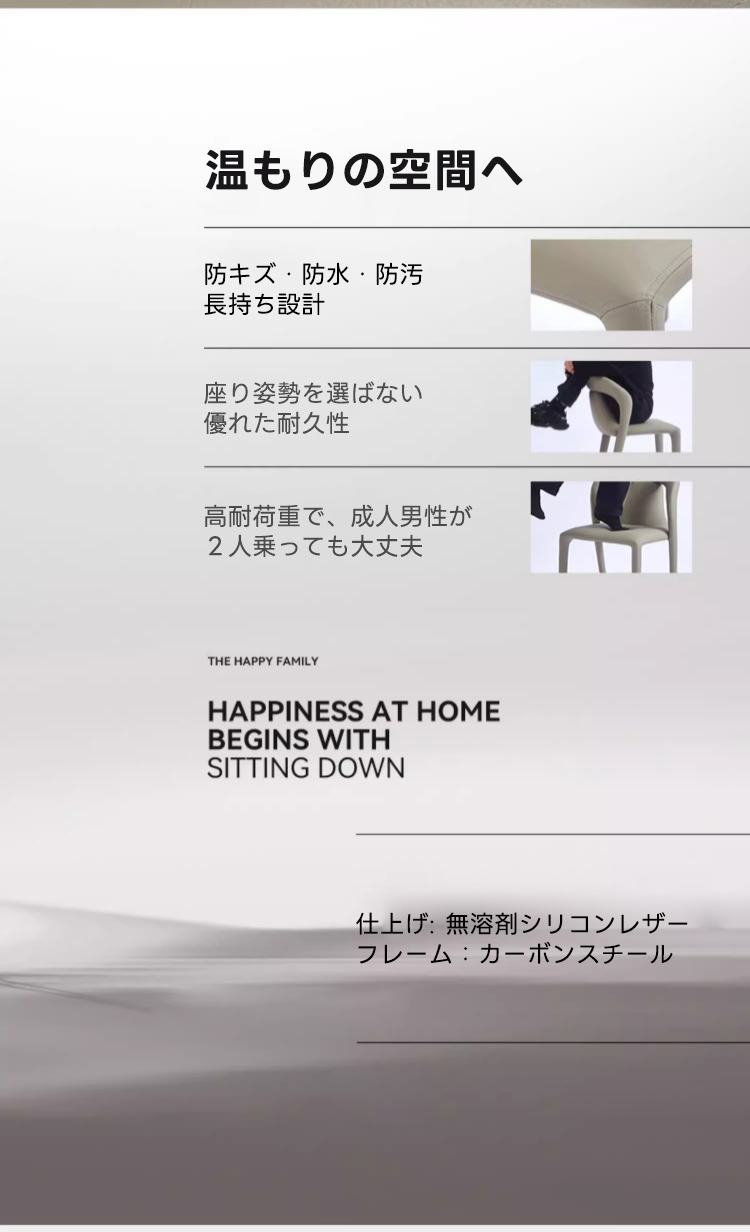 - 【多様なシーンで活躍するデザイン】:シンプルモダンなデザインが特徴のこのチェアは、ダイニングだけでなく、書斎やリビングでも使用可能です。カップルやファミリー、一人暮らしの方にも最適で、どんな空間にも調和します。