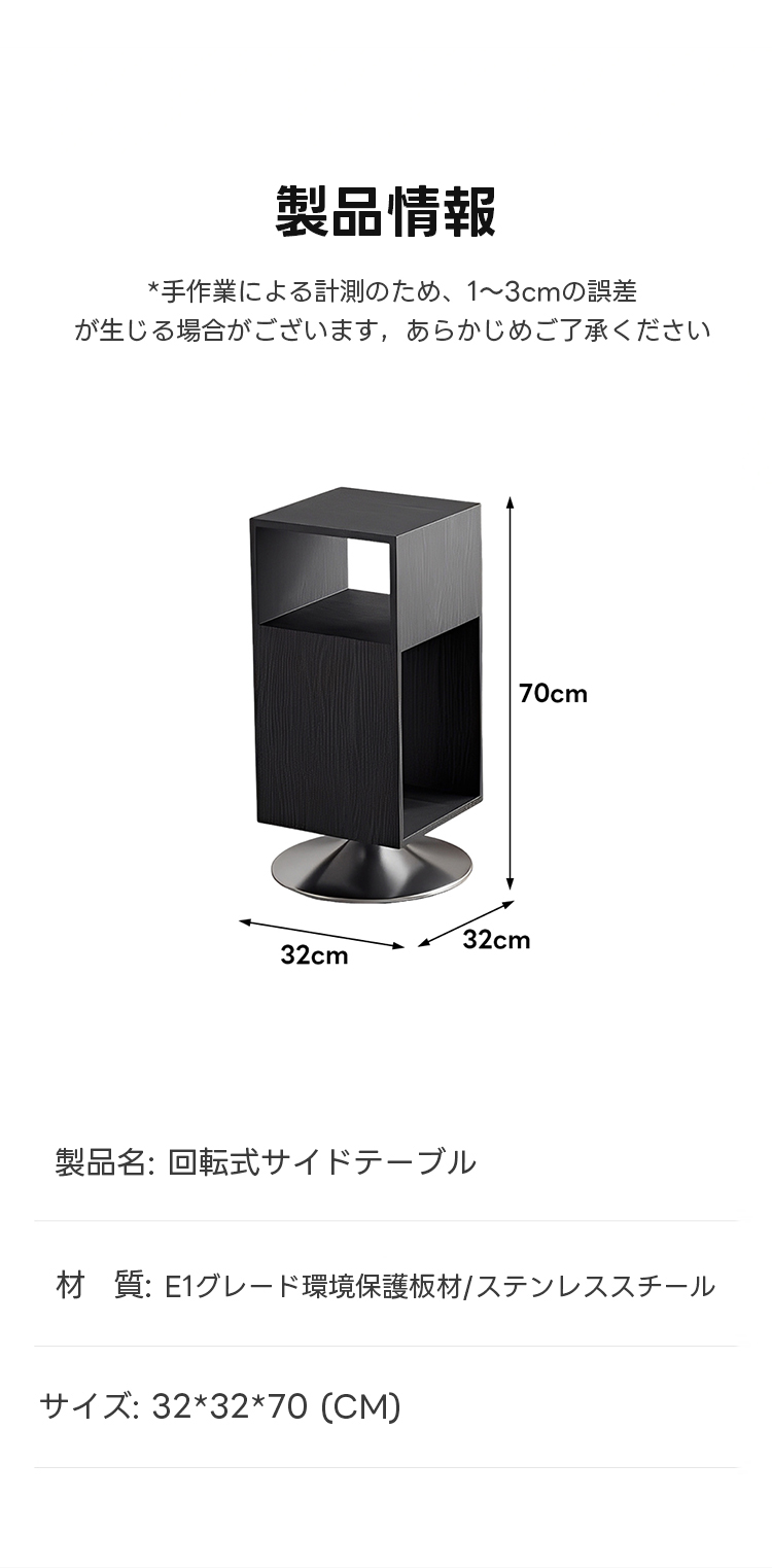 - 【360度回転機能で使い勝手抜群】このサイドテーブルは360度回転機能を備えており、どの角度からでも簡単にアクセス可能です。リビングやベッドサイドでの使用に最適で、必要なものをすぐに手に取ることができます。