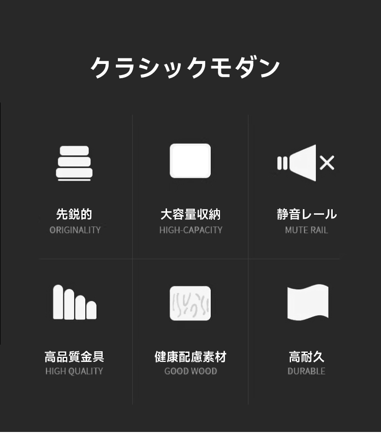 - 【高品質素材と静音設計】E1グレードの環境保護板材と高品質金具を使用し、耐久性と安全性を兼ね備えています。引き出しには静音レールを採用し、スムーズで静かな開閉が可能です。
