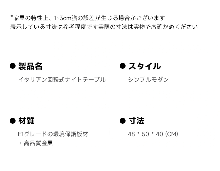 - 【360度回転機能で使いやすさ抜群】このイタリアン回転式ナイトテーブルは、360度自由に回転可能な収納スペースを備えており、必要なものをすぐに取り出せます。シンプルモダンなデザインで、どんな寝室にもマッチします。