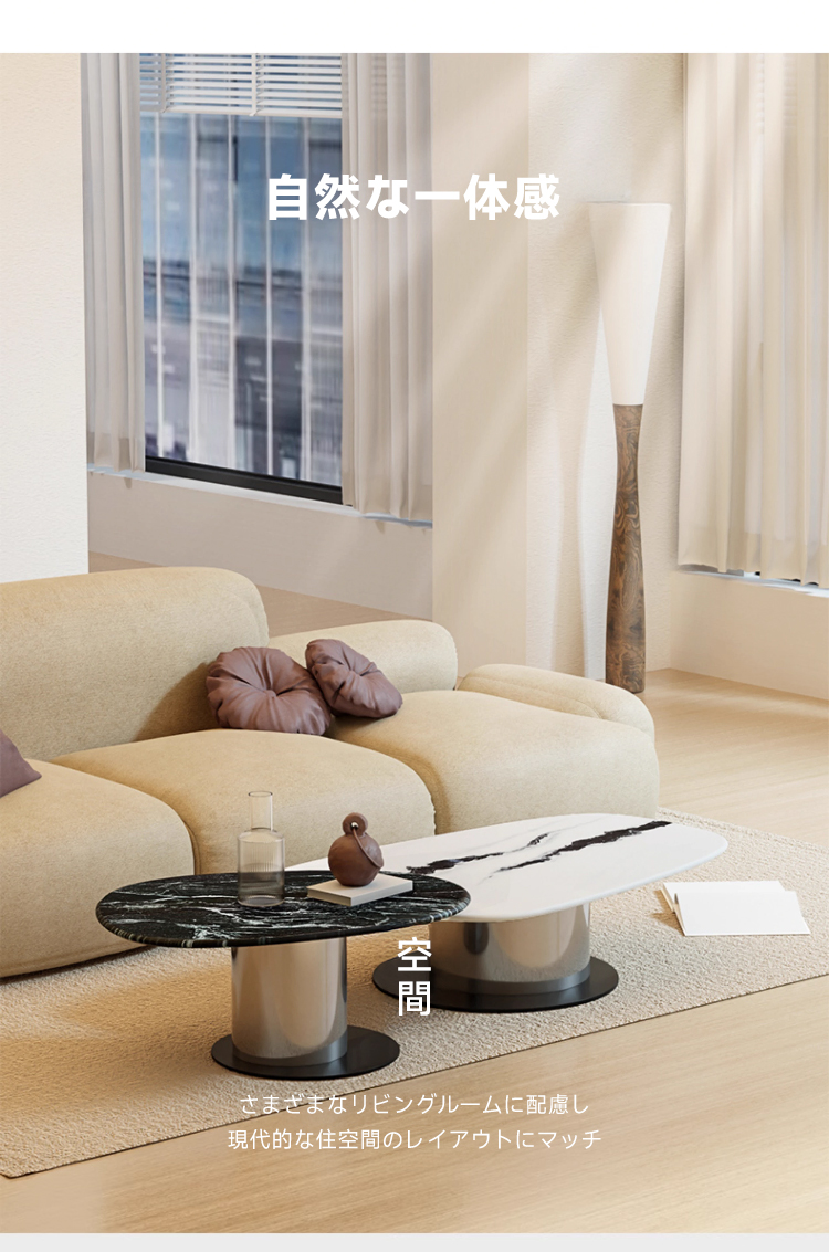 - 【多機能なデザイン】このモノクロセラミックセンターテーブルは、ネストテーブルとしても使用可能で、用途に応じて自由に配置できます。シンプルでモダンなデザインが、リビングルームをスタイリッシュに演出します。