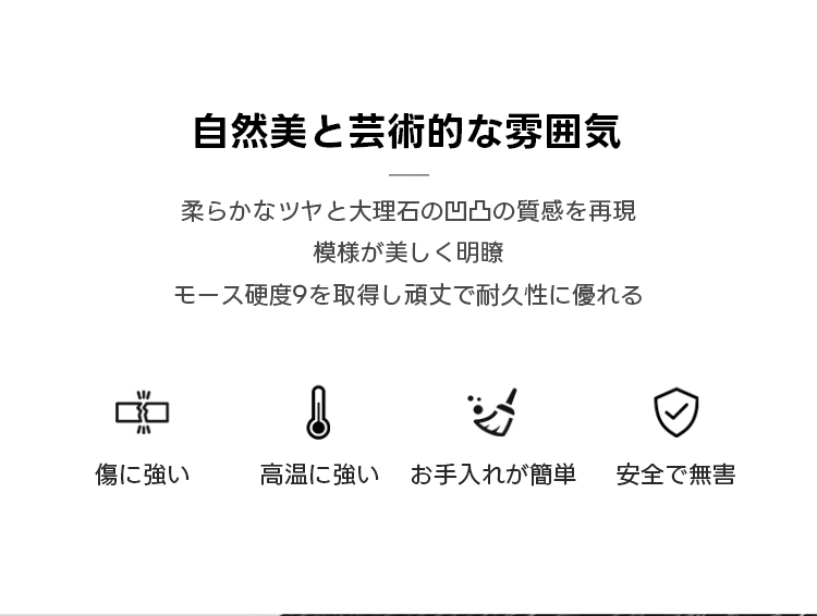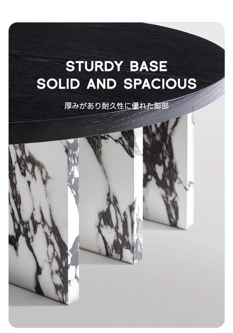 - 【高品質な素材と耐久性】:頑丈なセラミック製の脚部は、耐久性に優れ、長くお使いいただけます。天然大理石模様の天板は視覚的にも美しく、どんな空間にも高級感を演出します。モース硬度9を取得しており、傷や高温に強く、耐久性も抜群です。