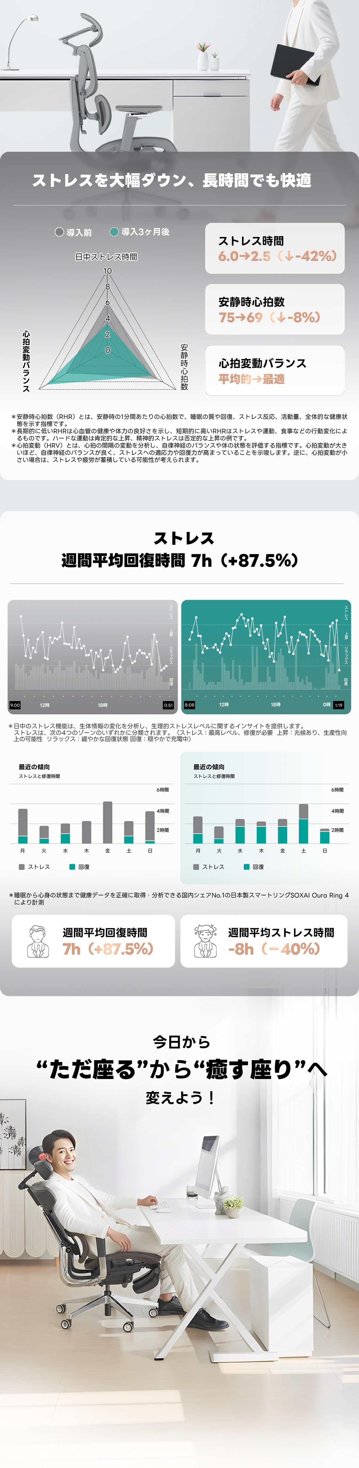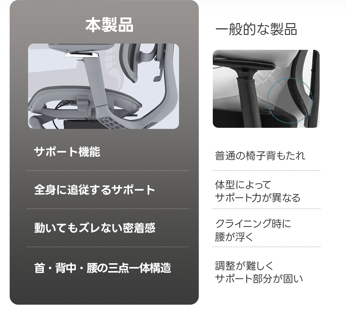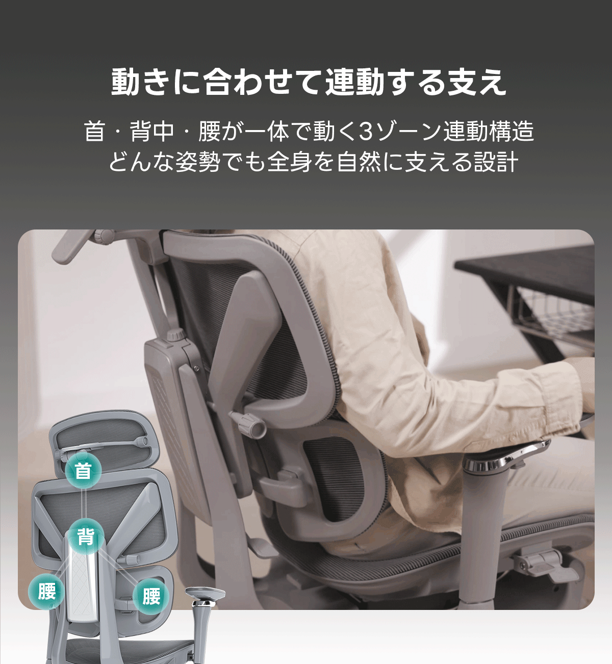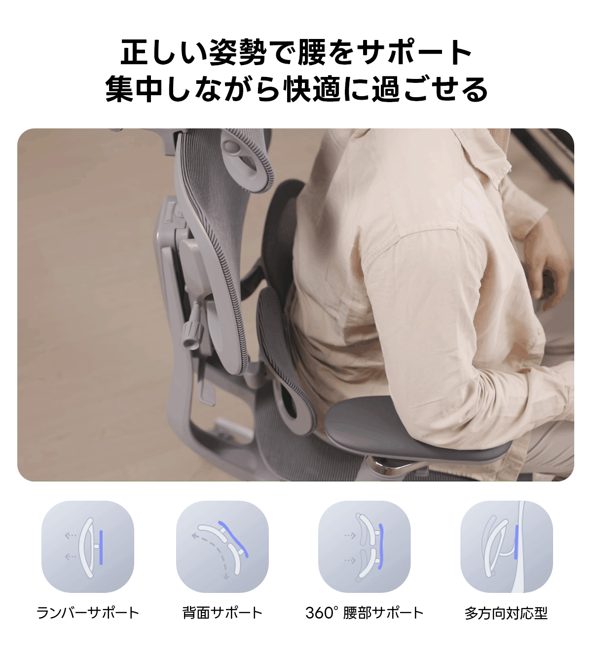- 【人間工学に基づく快適サポート】背骨のS字カーブをしっかり支えるエルゴノミクス設計で、腰や背中にかかる負荷を軽減。長時間の作業時も自然な姿勢を保ち、疲れにくい座り心地を実現します。