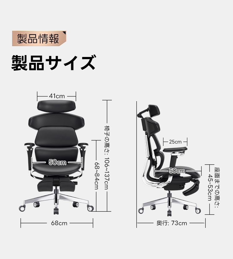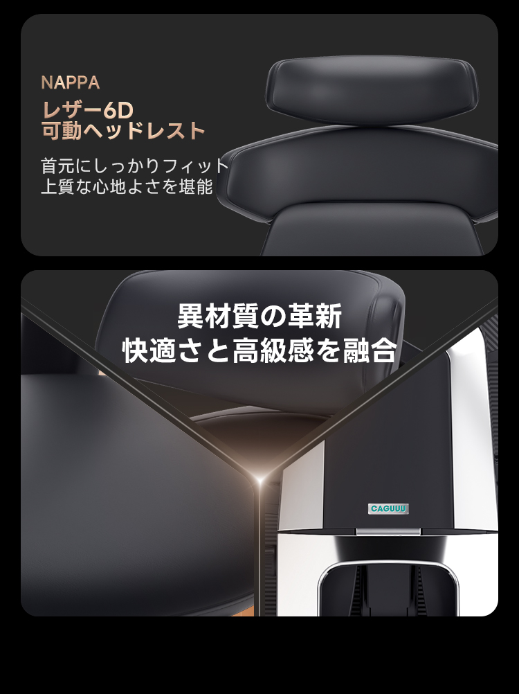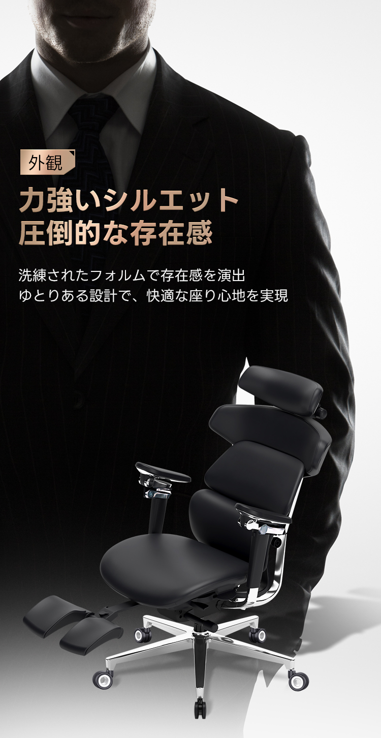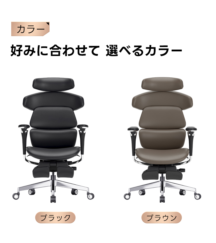 - 【高級感あふれる素材とデザイン】:トップグレインレザーを使用したこのチェアは、ブラックとブラウンの2色展開で、上質なナッパレザーと高反発クッションを組み合わせ、首から肩までを的確にサポートします。