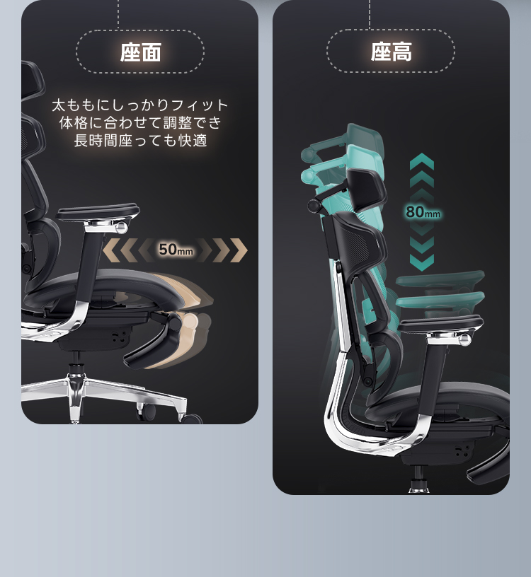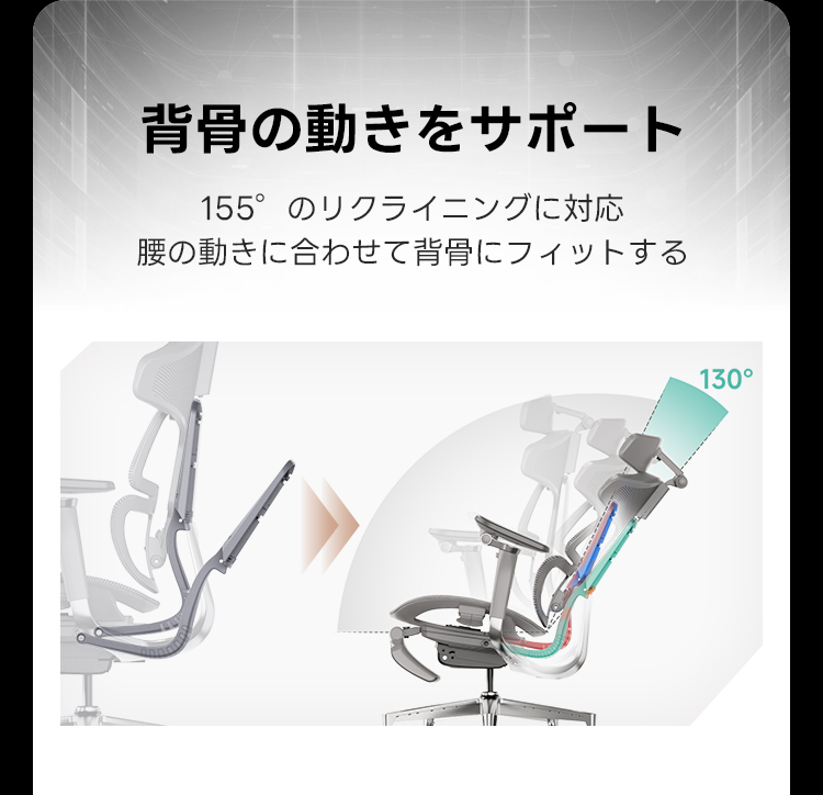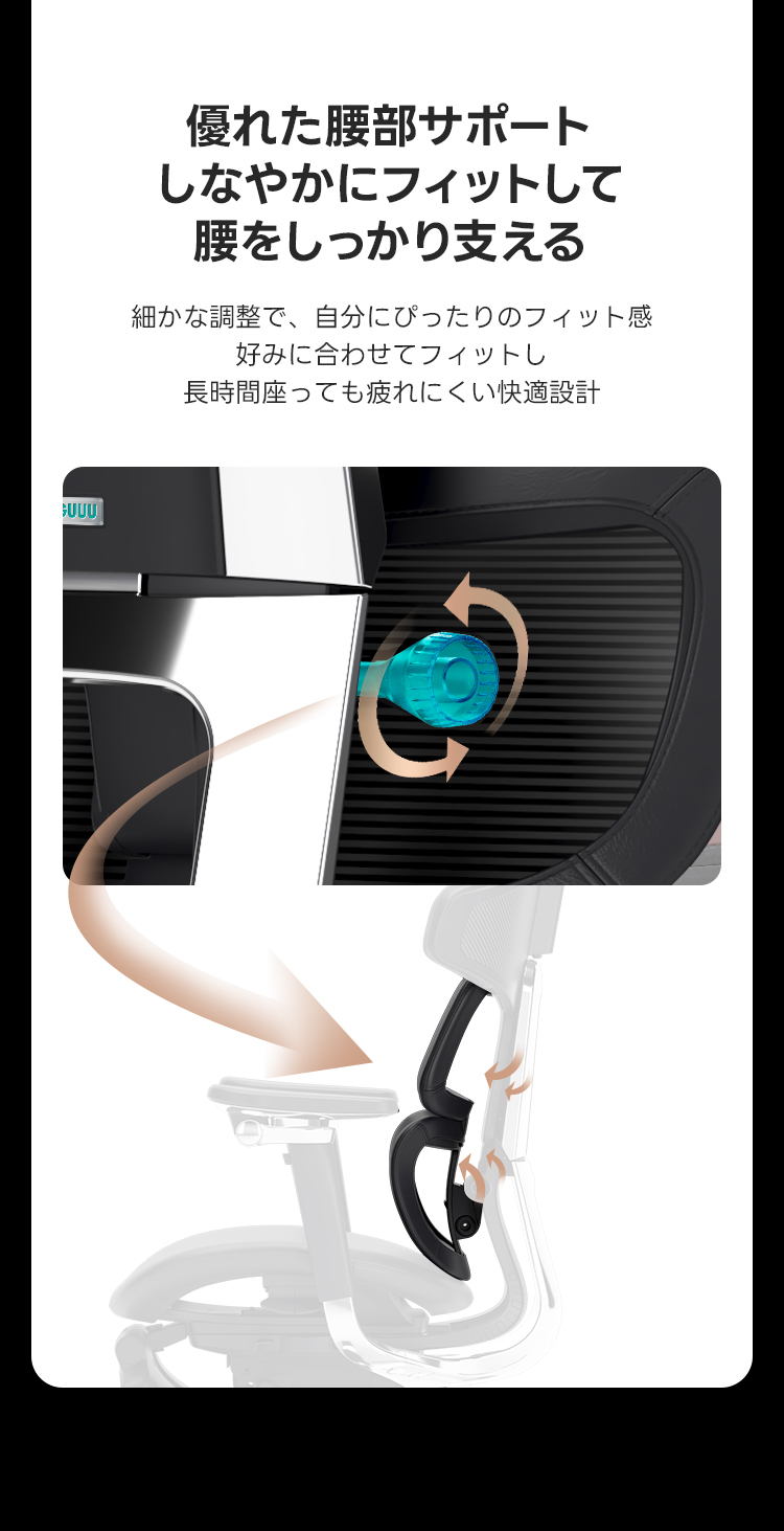 - 【エルゴノミクスデザインで快適サポート】:このオフィスチェアは、背骨の動きに寄り添うエルゴノミクスデザインを採用し、腰をしっかりサポートします。ランバーサポートの強度調整が可能で、個々の体型に合わせたフィット感を提供します。