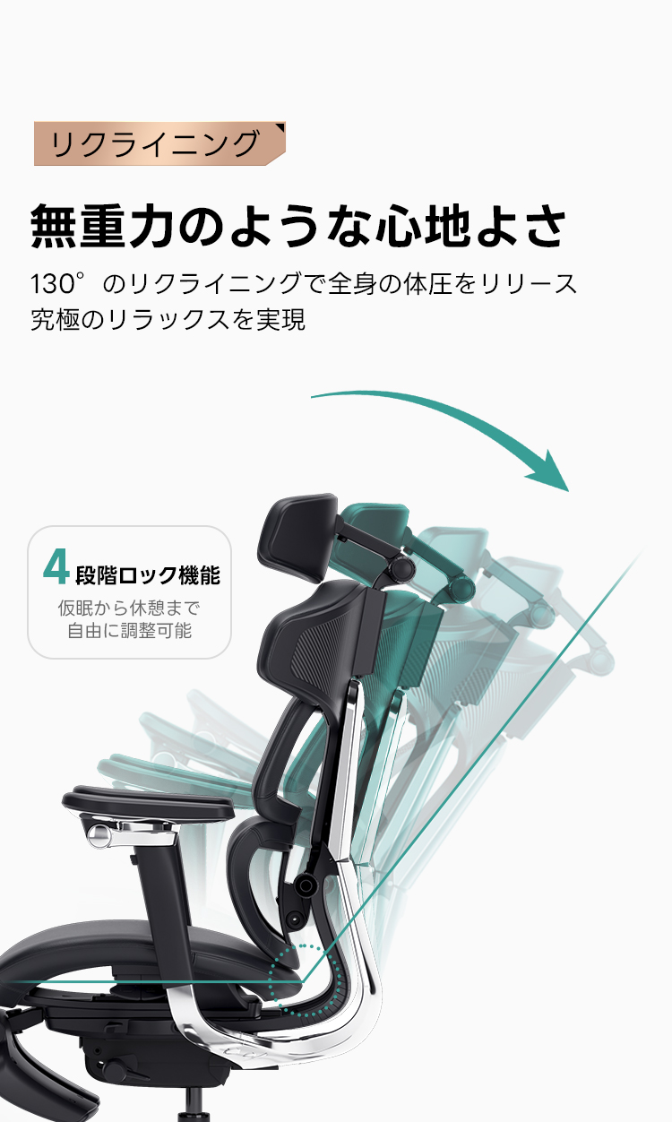 - 【リクライニング機能でリラックス】:155°までリクライニング可能なこのチェアは、無重力のようなリラックス感を実現します。4段階のロック機能で、仮眠から休憩まで自由に調整可能です。