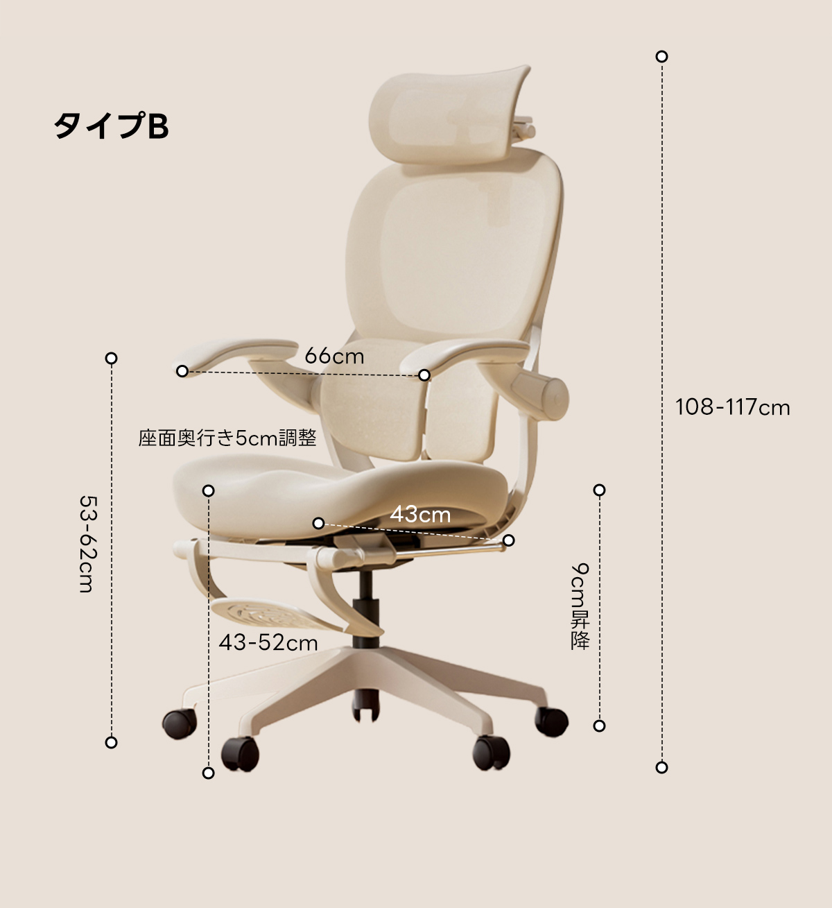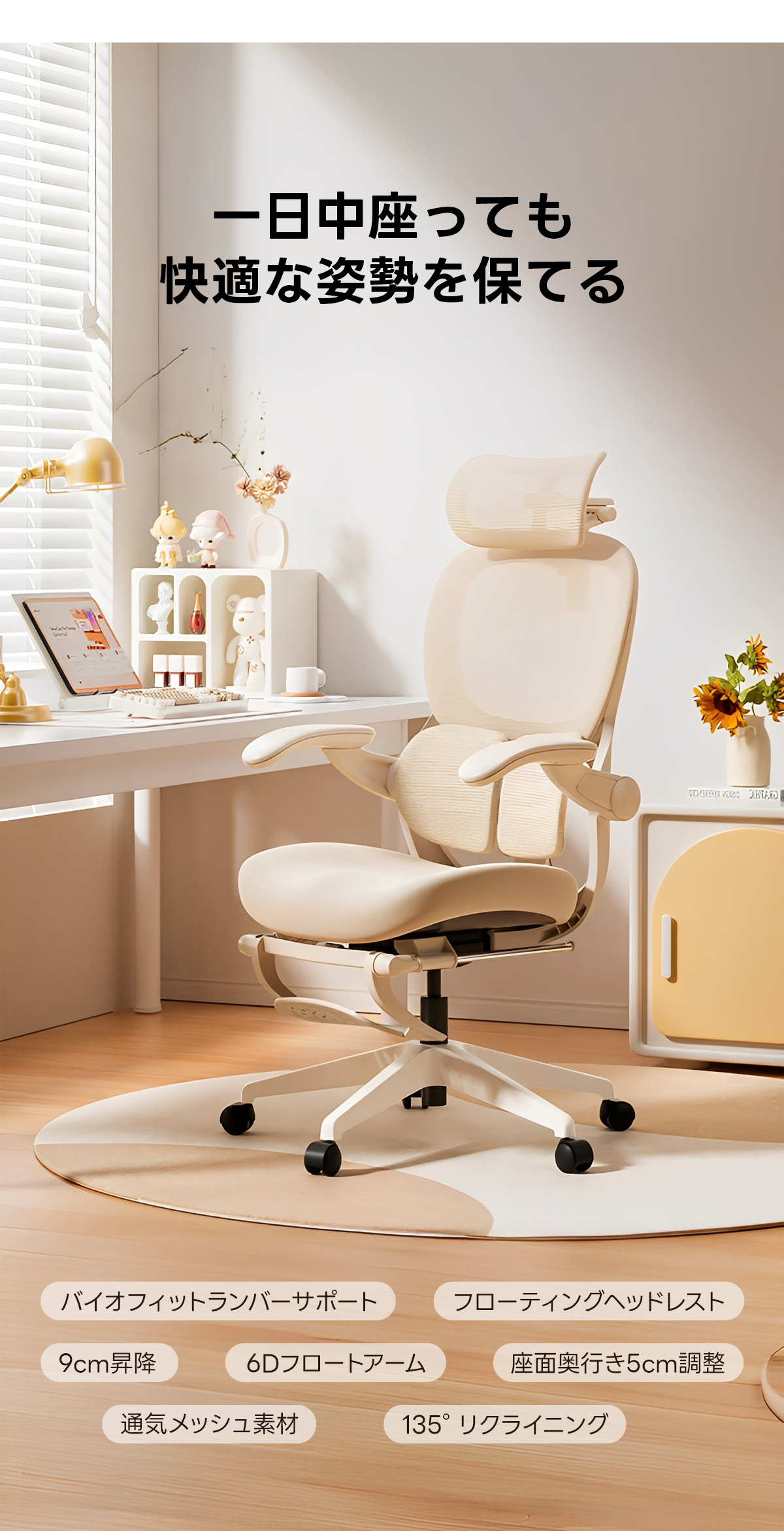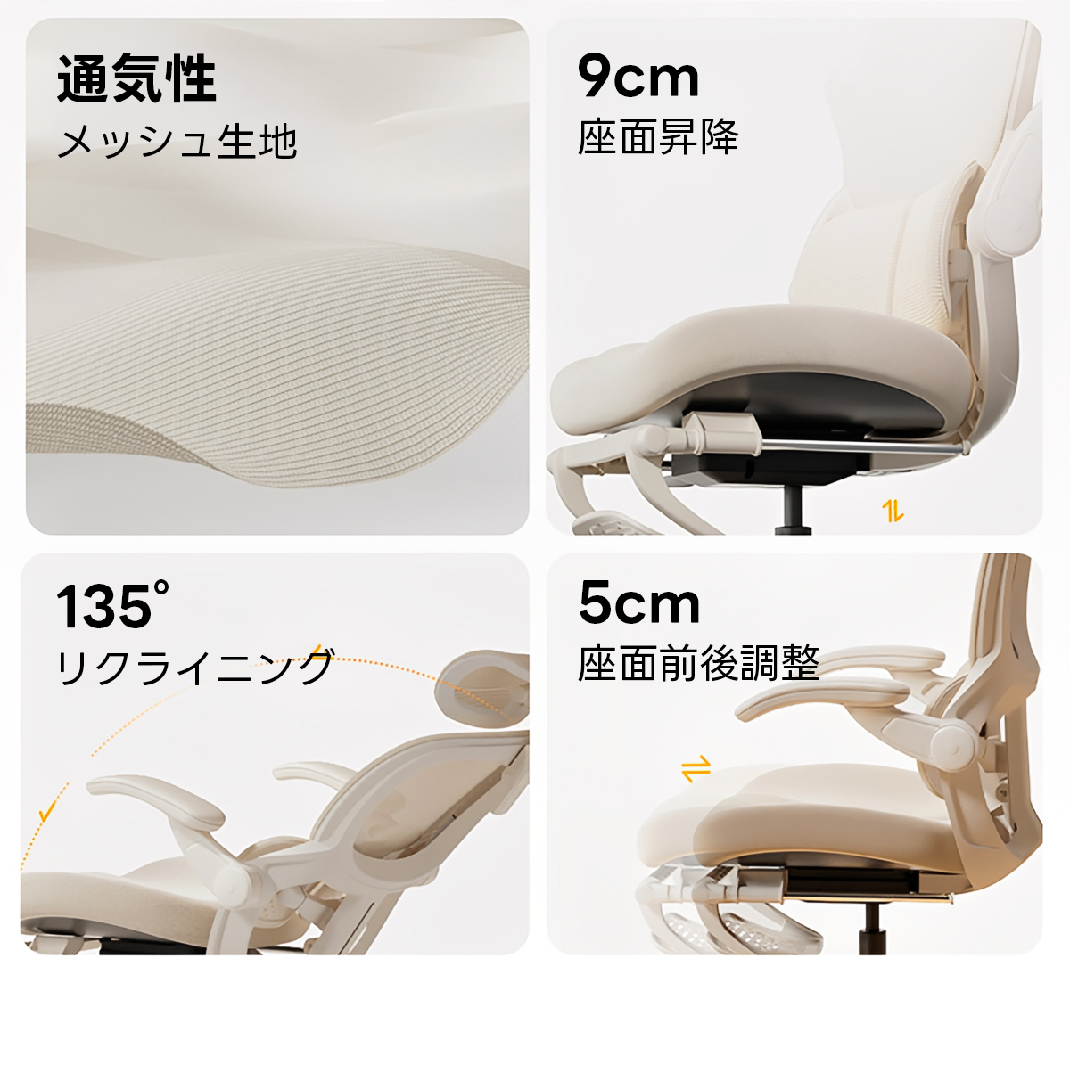 - 【調整可能な機能で最適な座り心地】:最大135度までリクライニング可能で、座面の高さは9cmの範囲で調整可能です。座面奥行きも5cm調整できるため、体型に合わせた最適な座り心地を提供します。