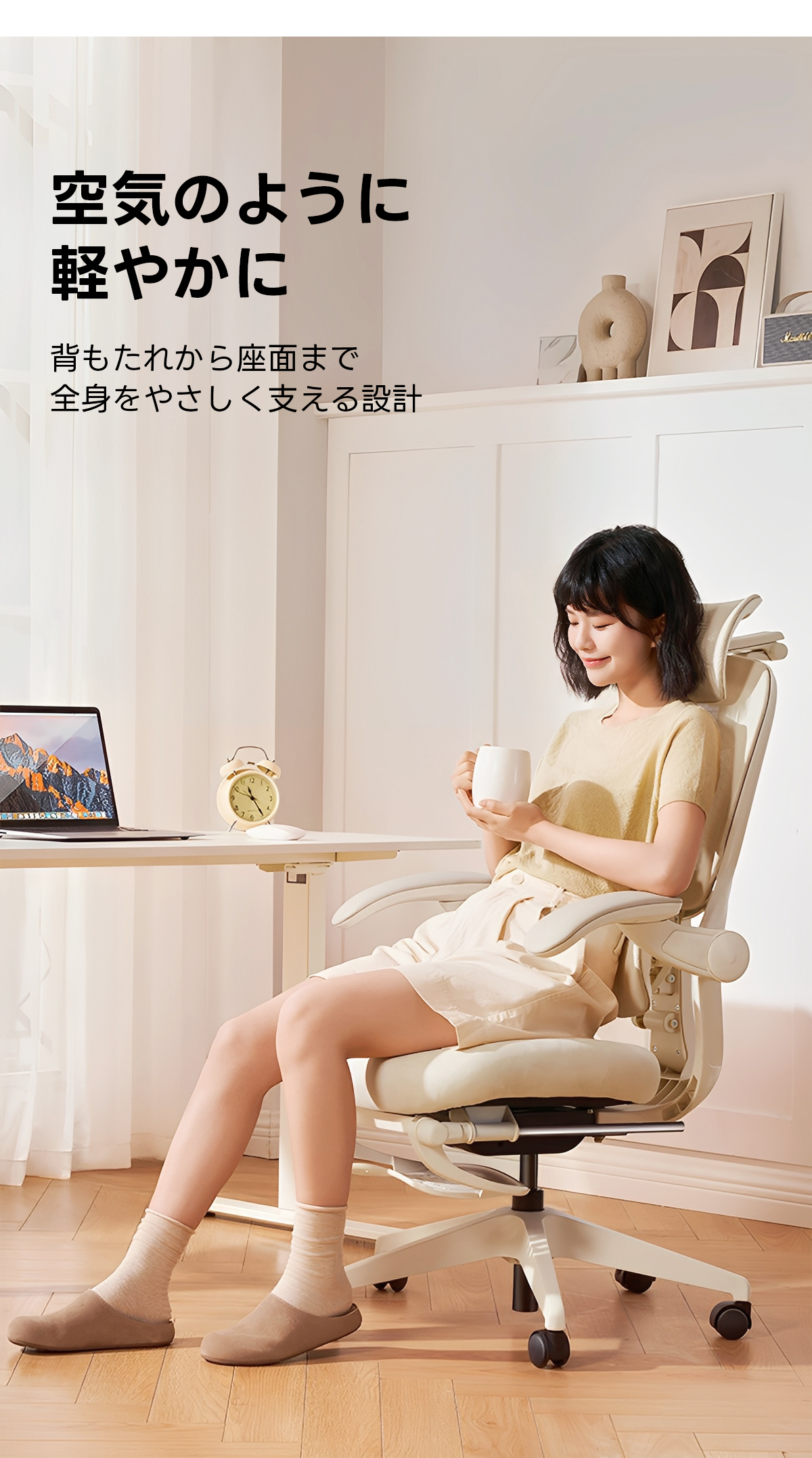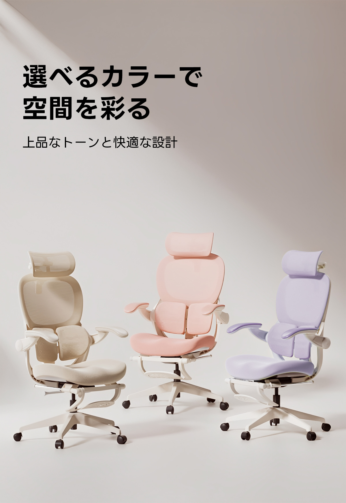 - 【快適な座り心地とスタイリッシュなデザイン】:アクシス エアリーオフィスチェアは、快適な座り心地とスタイリッシュなデザインを兼ね備えています。多彩なカラーバリエーションと高機能なサポートを提供し、長時間の作業でも快適な姿勢を保つことができます。