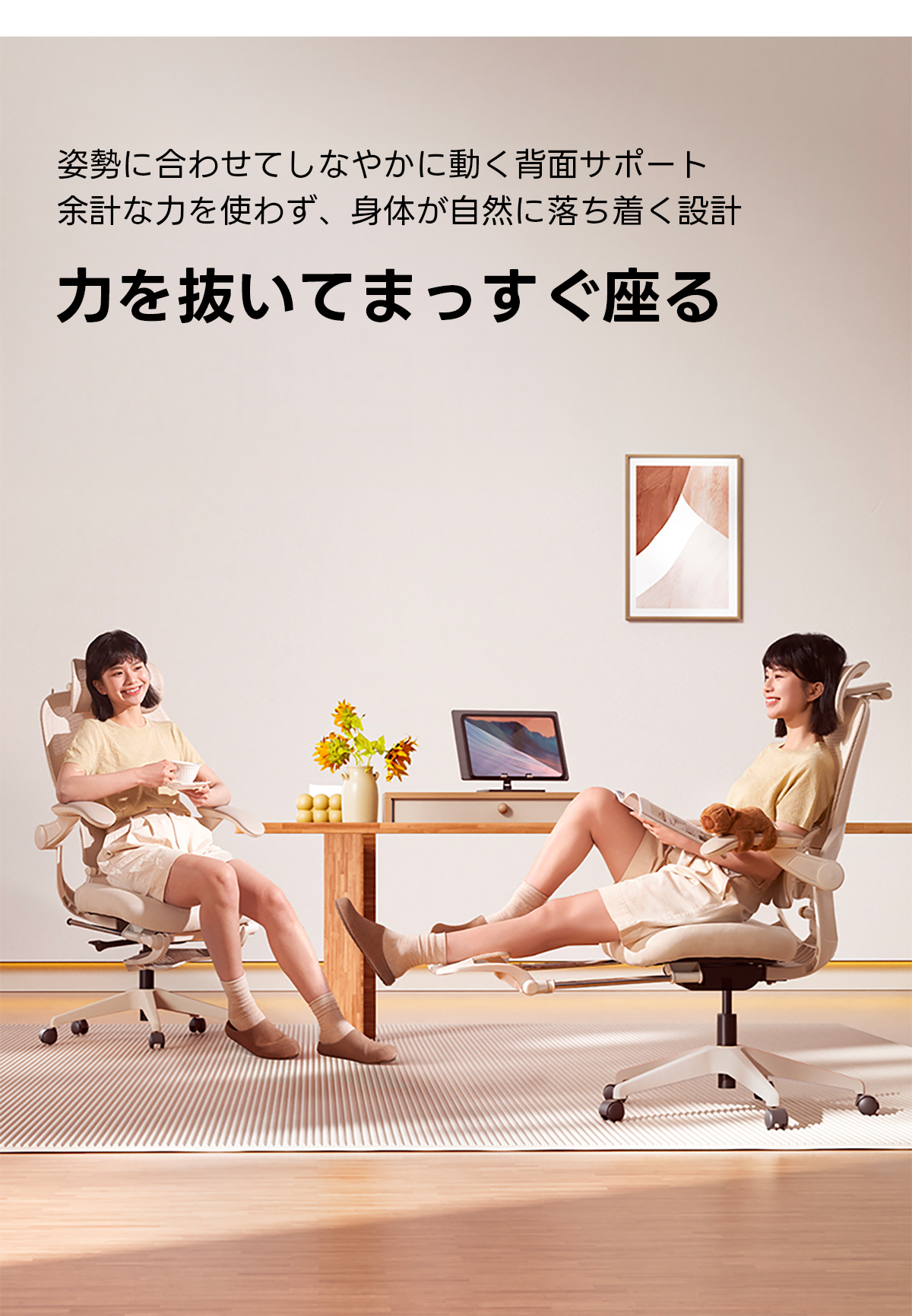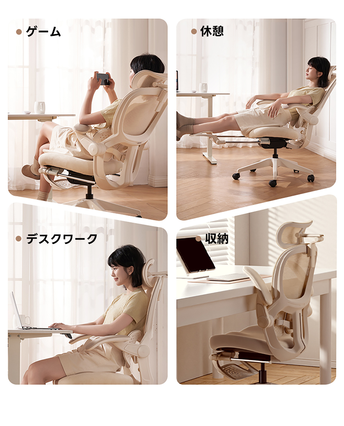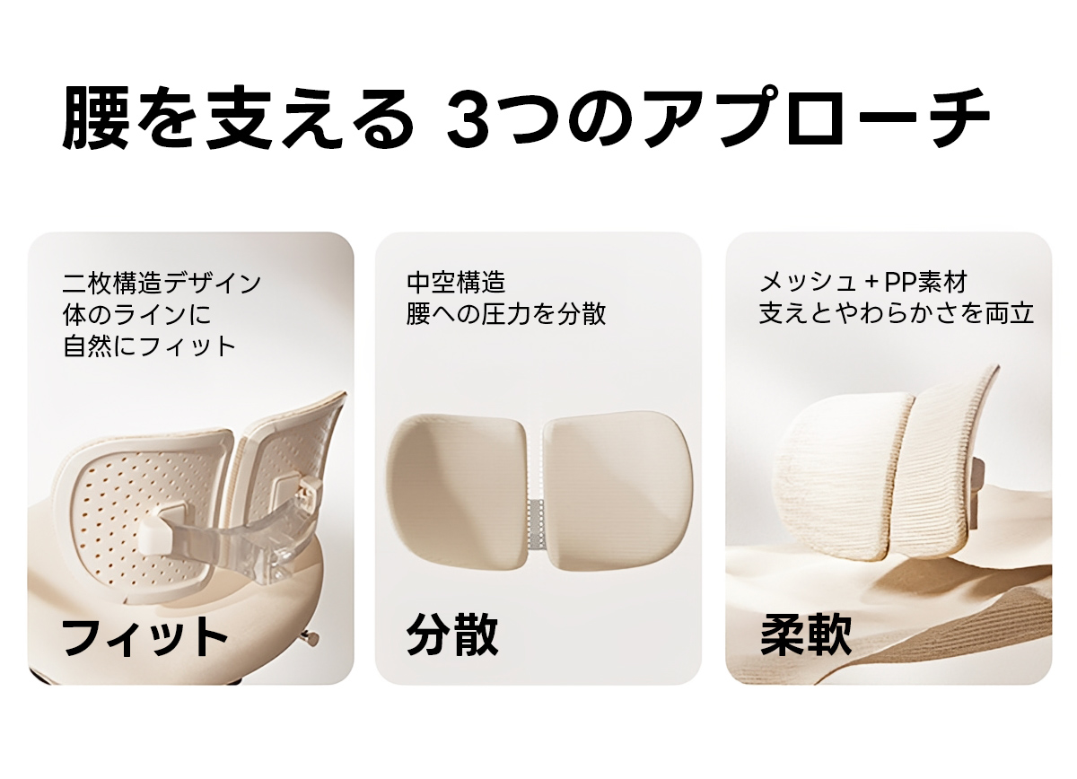 - 【優れた素材と構造】:フランネル生地を使用し、肌触りが良く、長時間座っても疲れにくい設計です。通気性の高いメッシュ素材を背もたれに採用し、蒸れを防ぎます。