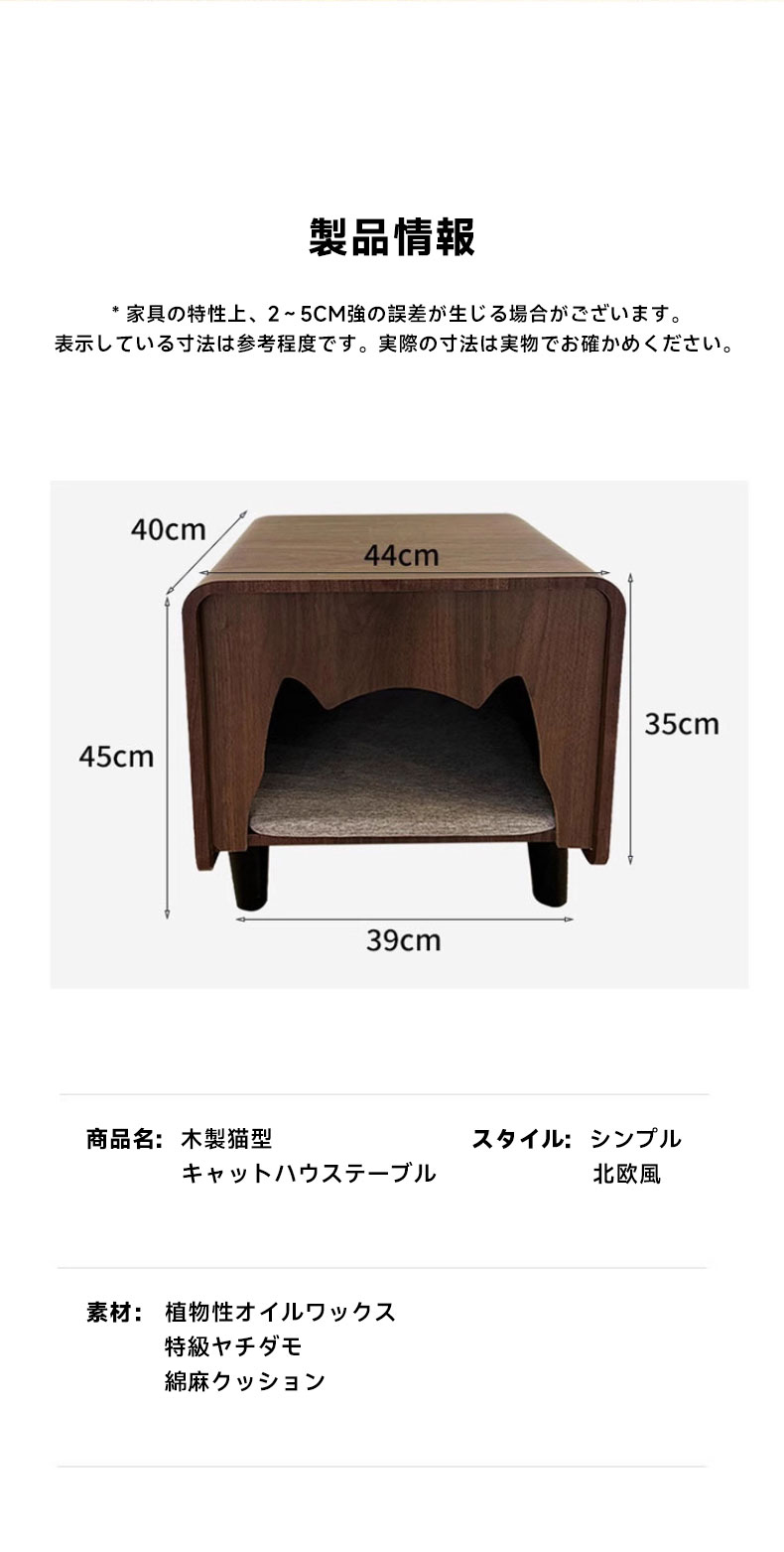 - 【高品質な素材とデザイン】高温処理された木材を使用し、環境に優しいオイルワックスでコーティングされています。滑らかで美しい木目が際立ち、猫のシルエットが施された入り口が特徴です。
