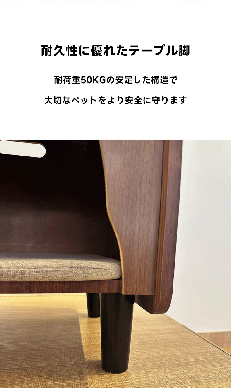 - 【ペットと共に快適な暮らし】ペットが安心して過ごせる空間を提供しながら、インテリアとしても魅力的なアイテムです。耐荷重50KGの頑丈なテーブル脚で安定した構造を実現し、安全に使用できます。
