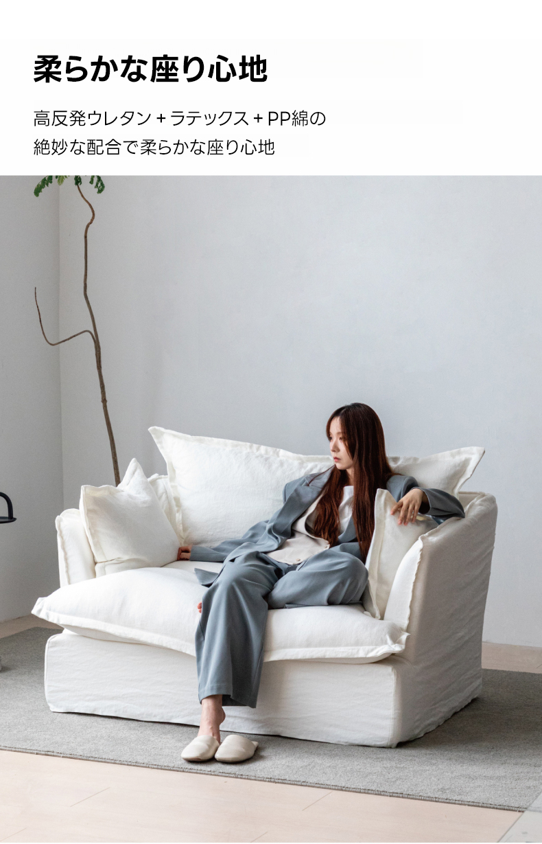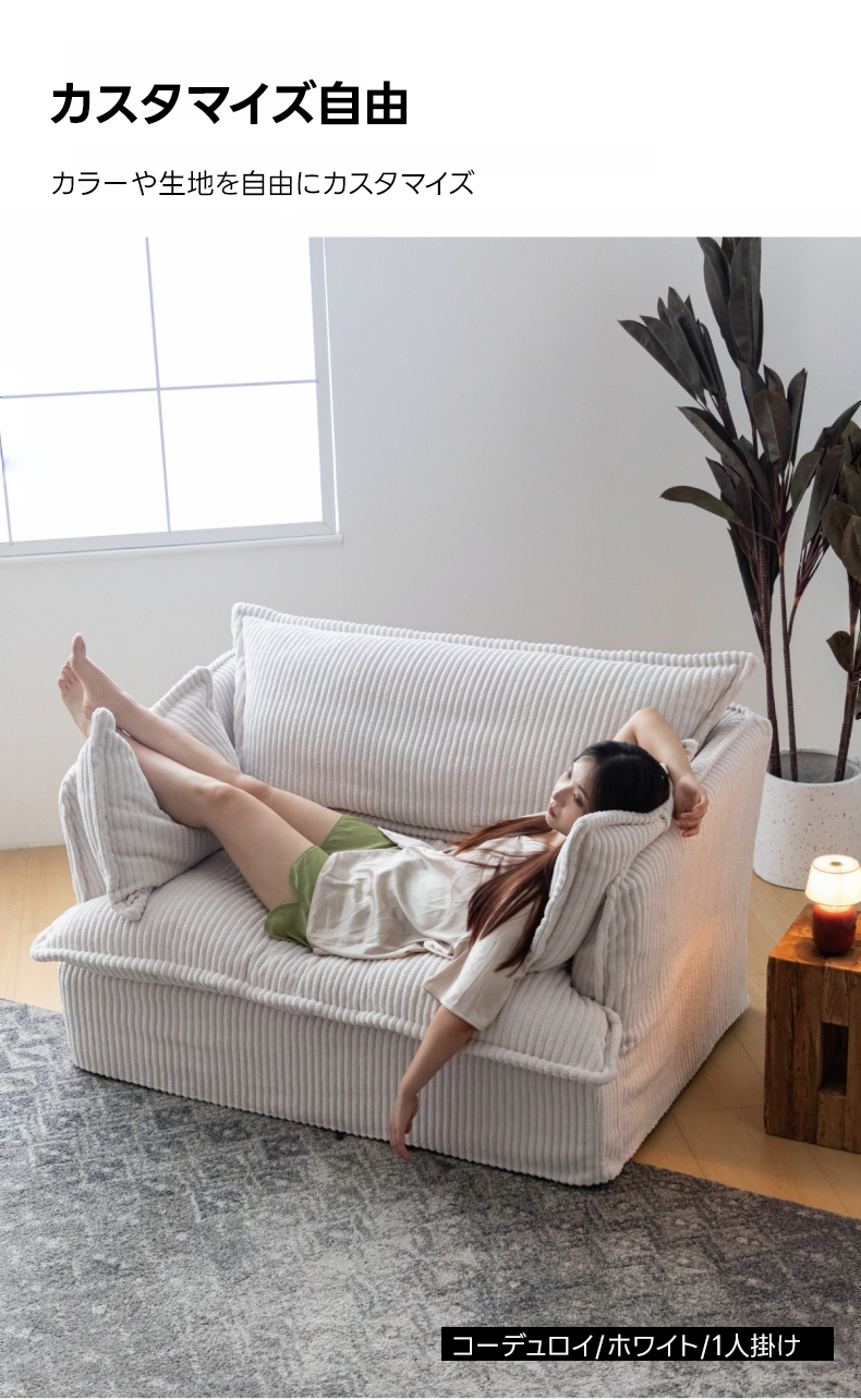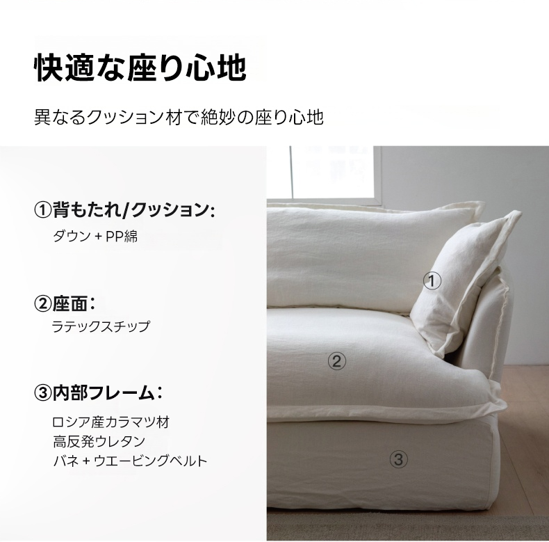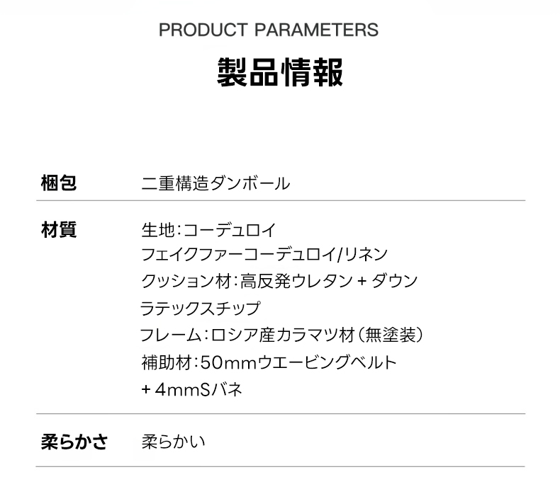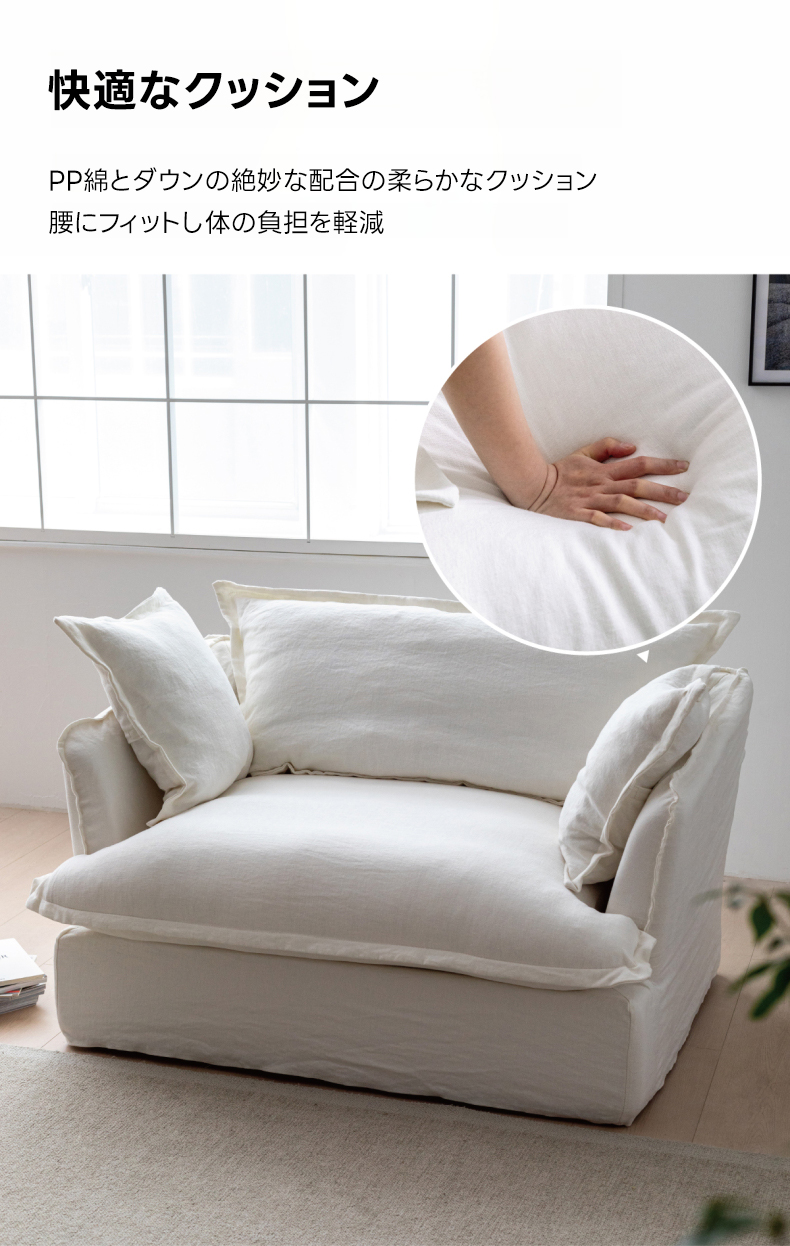 - 【高品質な素材と耐久性】:リネン、コーデュロイ、フェイクファーコーデュロイを使用し、季節を問わず快適に使用可能。ロシア産カラマツ材を使用したフレームが、しっかりとしたサポートを提供し、長期間使用しても安心です。