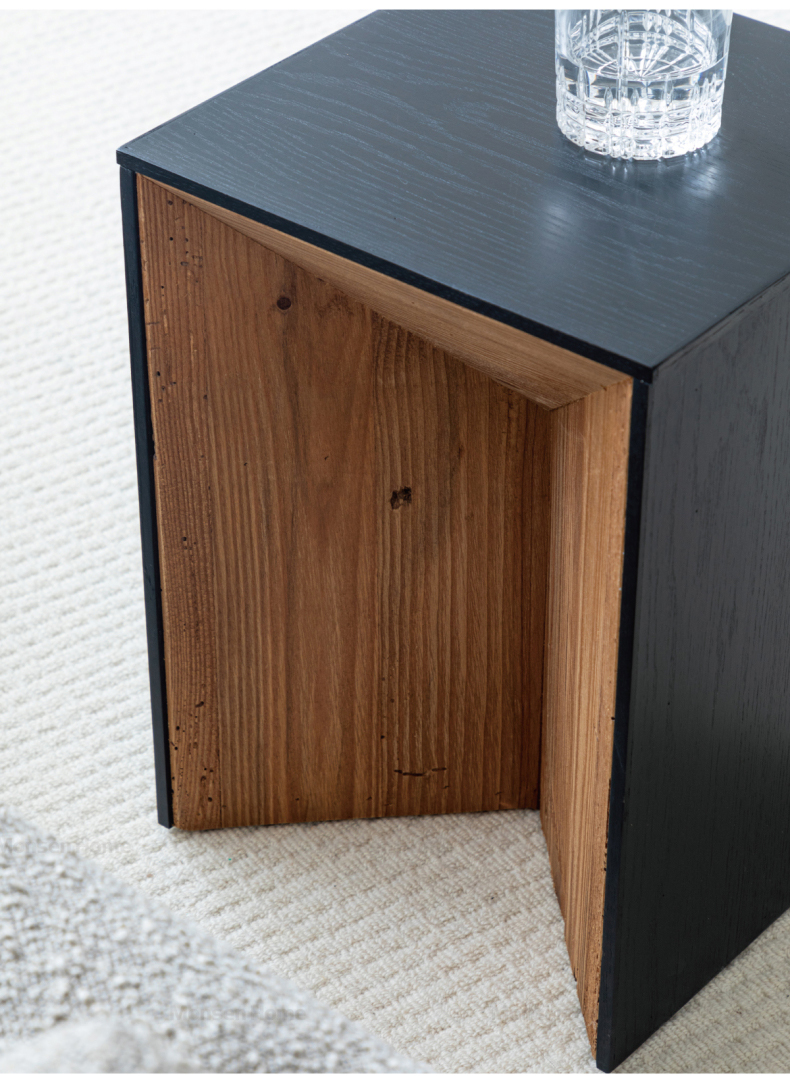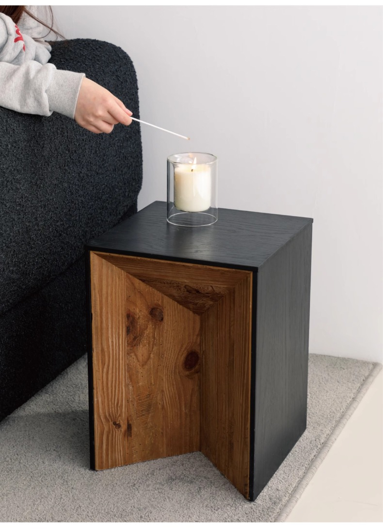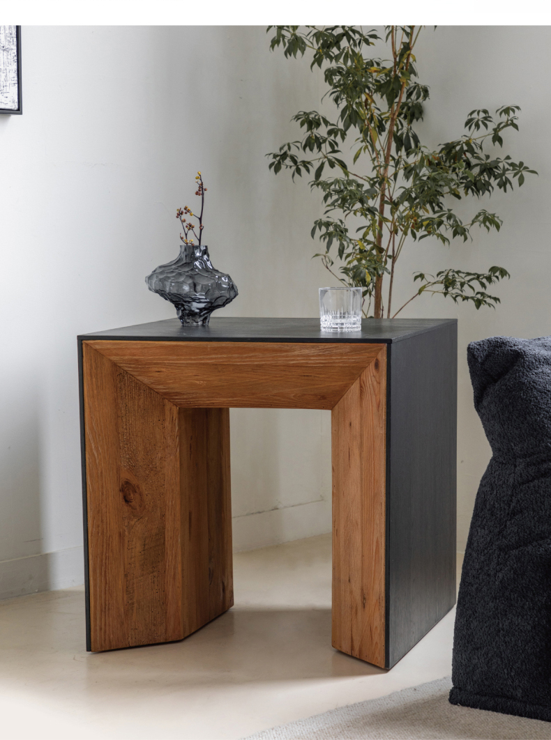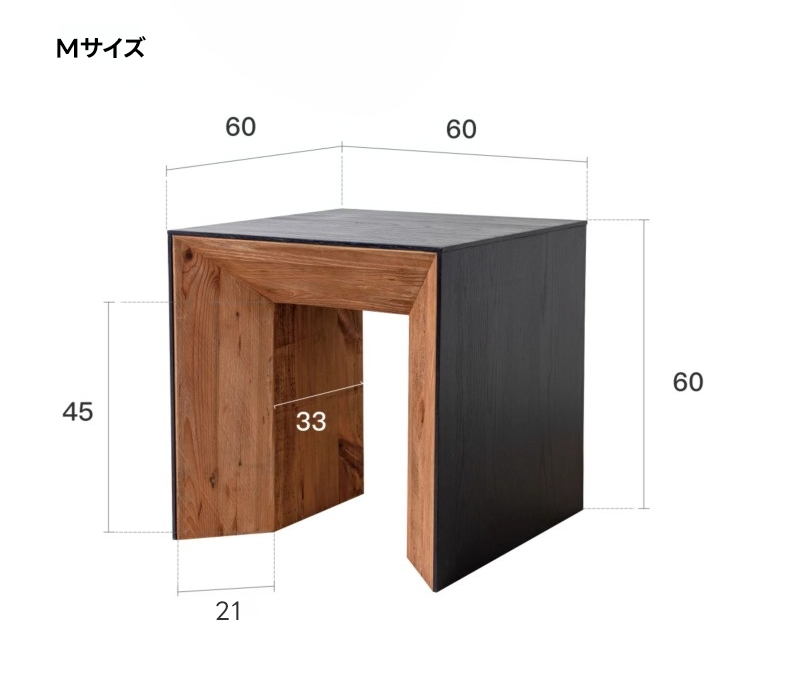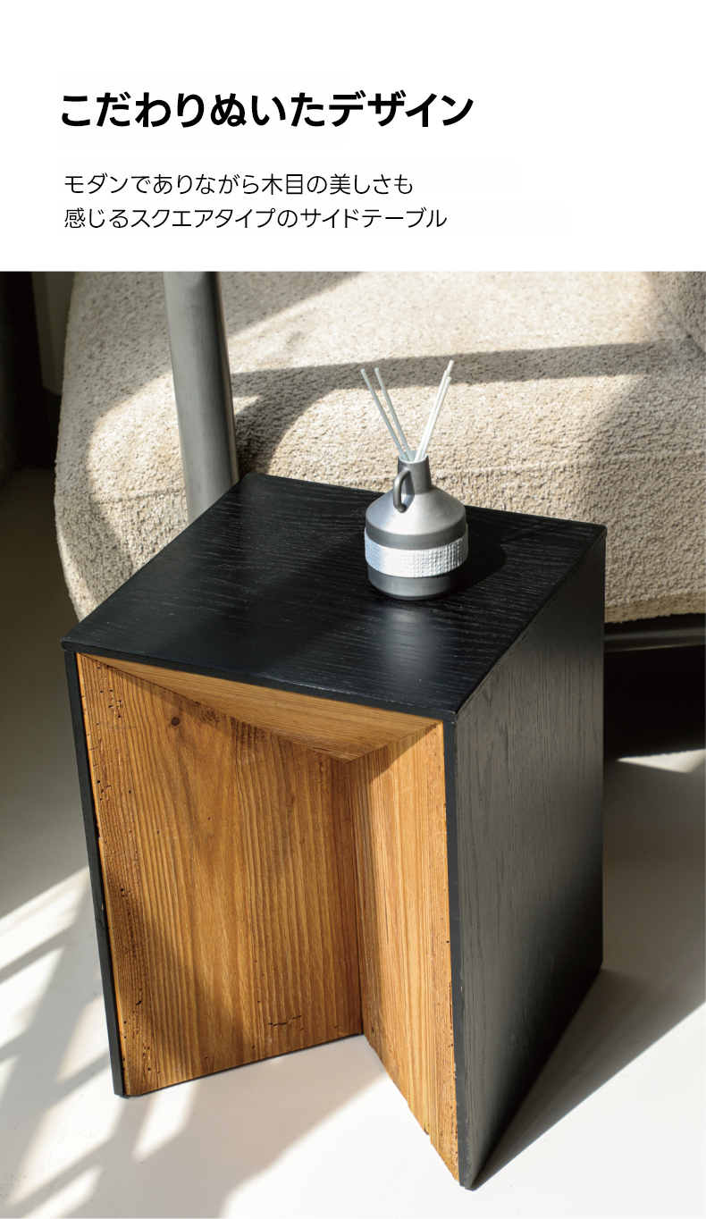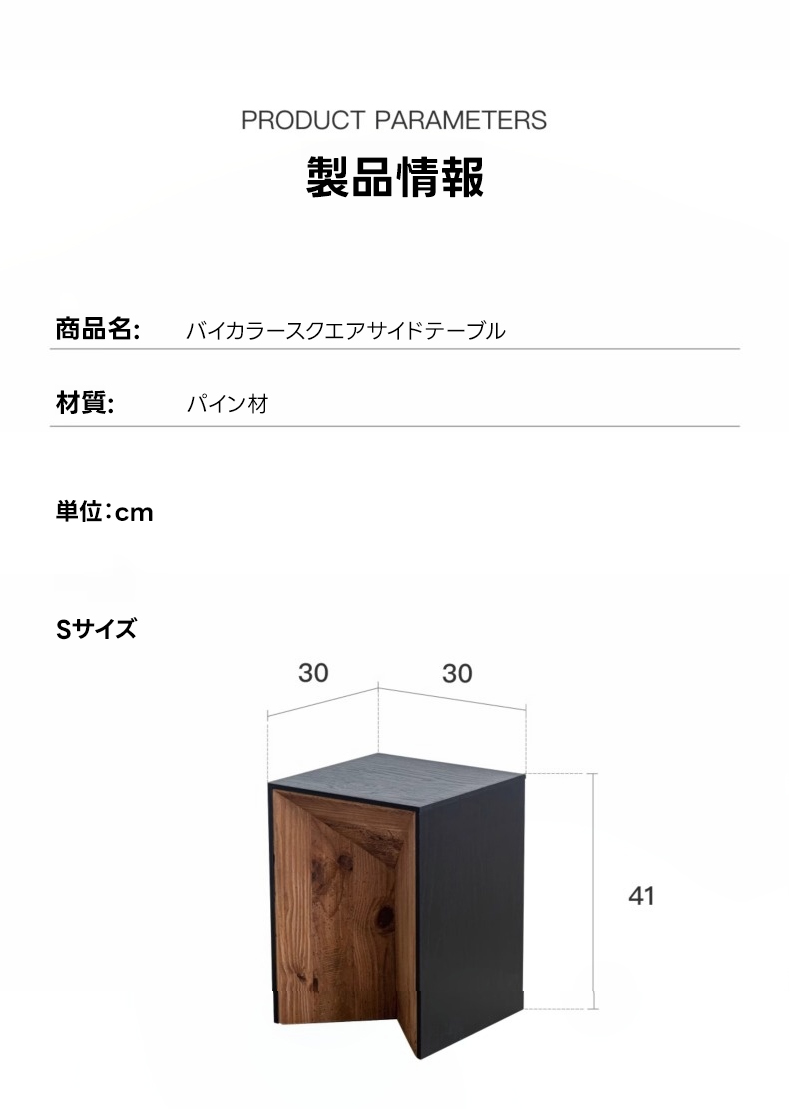 - 【モダンデザインと自然の調和】:バイカラースクエアサイドテーブルは、ブラックとパイン材のナチュラルな色合いが美しく調和したデザインです。どんなインテリアにもマッチし、空間に高級感をプラスします。