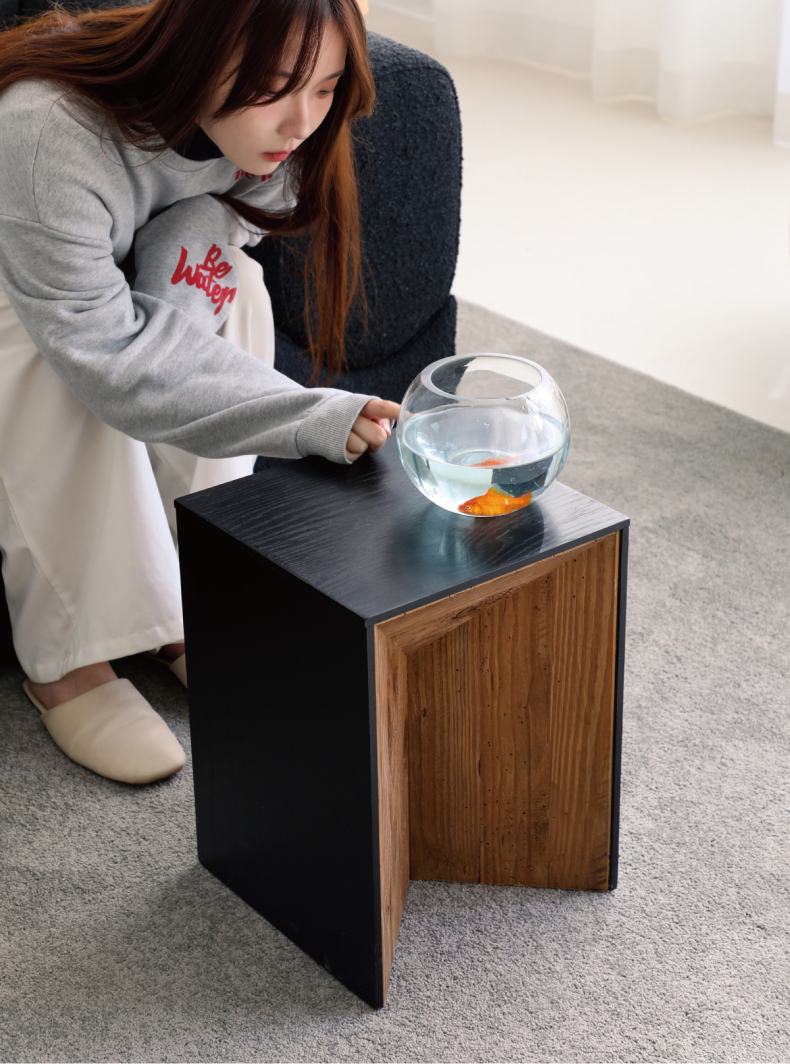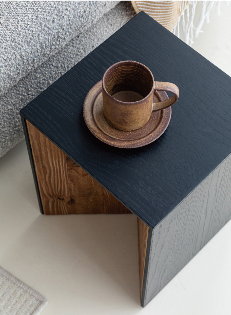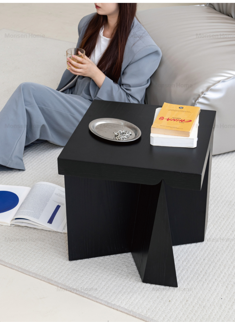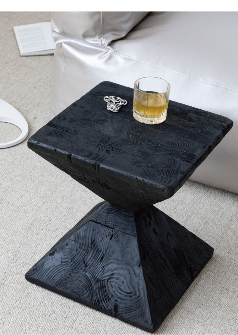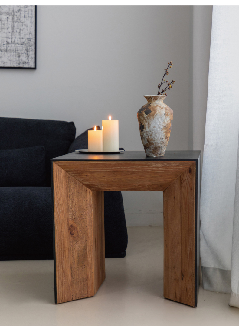 - 【モダンデザインと自然の調和】:バイカラースクエアサイドテーブルは、ブラックとパイン材のナチュラルな色合いが美しく調和したデザインです。どんなインテリアにもマッチし、空間に高級感をプラスします。