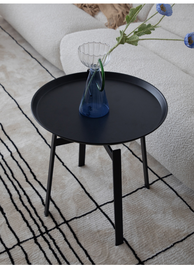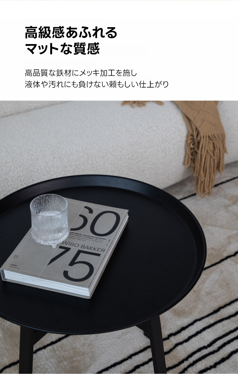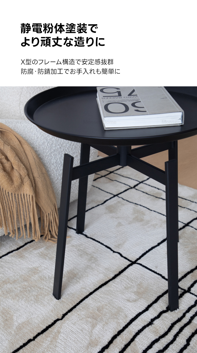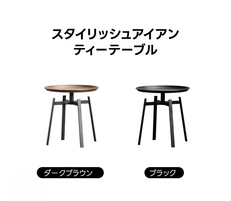- 【優れた機能性とデザイン】このスタイリッシュアイアンティーテーブルは、ブラックとダークブラウンの2色展開で、どんなインテリアにも自然に溶け込みます。丸みを帯びたエッジとフチ付きデザインにより、小物の落下を防ぎ、安全性を確保しています。