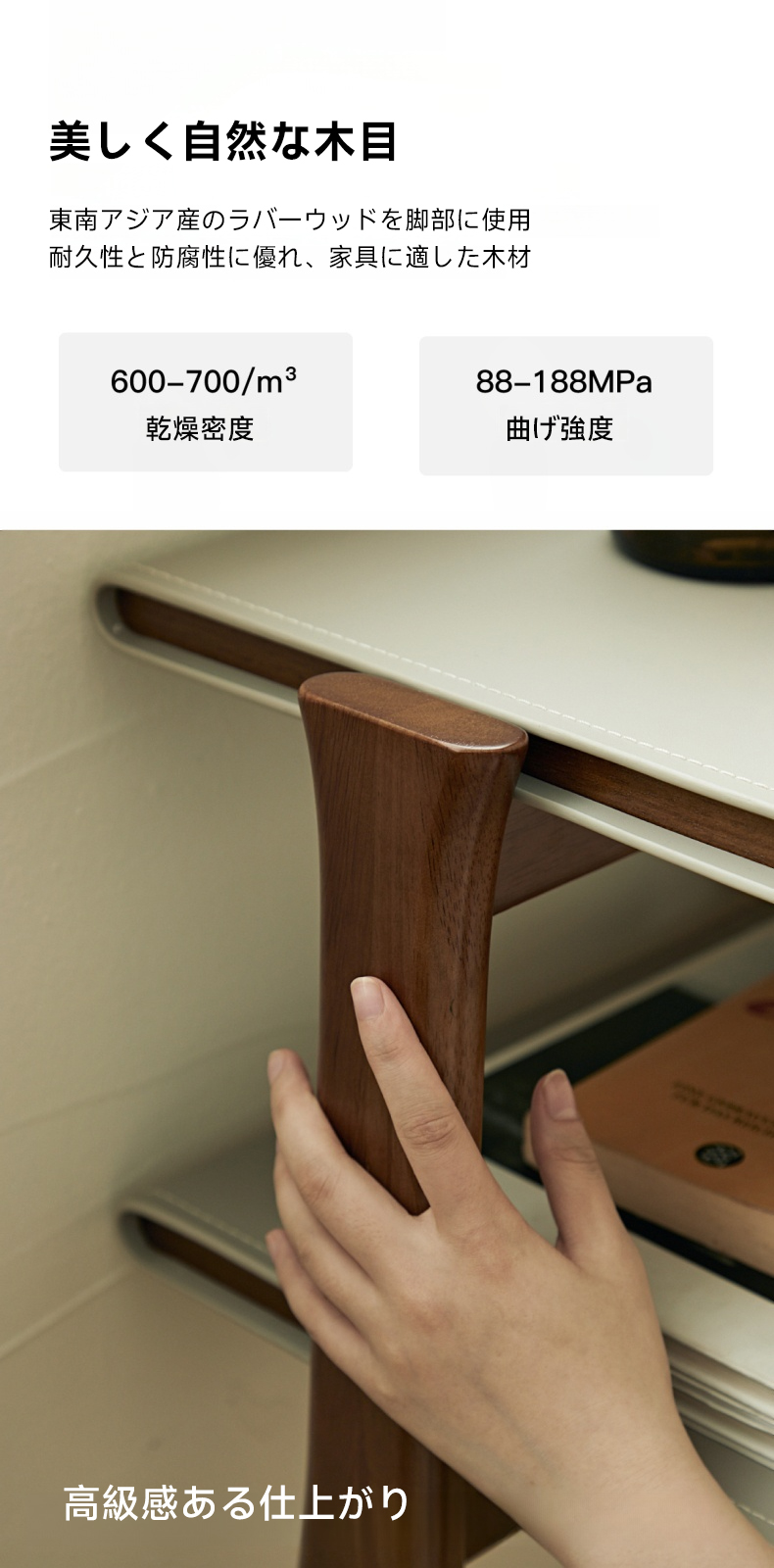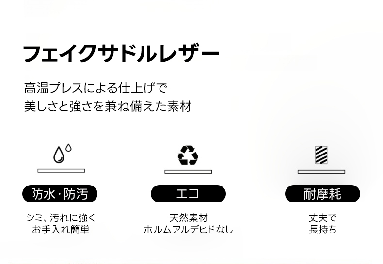- 【高品質な素材とデザイン】フェイクサドルレザーを使用し、高温プレスで仕上げられた防水・防汚性に優れた素材です。脚部には東南アジア産のラバーウッドを使用し、美しい木目と耐久性を兼ね備えています。